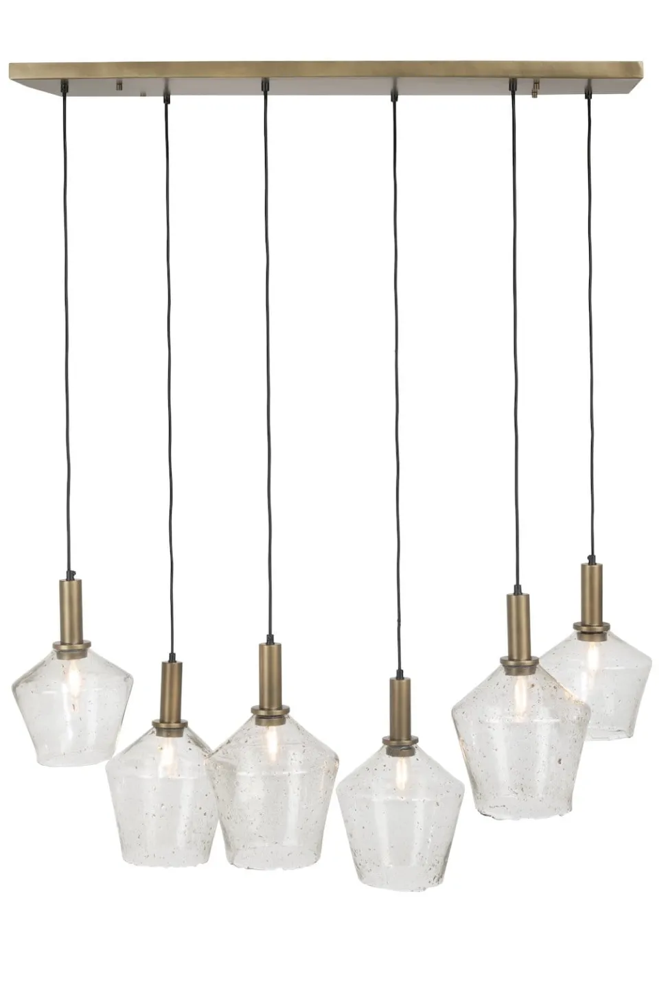 De Amy hanglamp van COCOmaison is een echte eyecatcher die jouw interieur een verfijnde uitstraling geeft. Met een breedte van 110 cm en een stijlvol gouden armatuur straalt deze lamp pure elegantie uit. Deze lamp heeft 6 lichtpunten met bijzondere burned ash glazen kap. Dit zorgt voor een warme en sfeervolle gloed verspreidt. Deze lamp, geschikt voor 6*E27 lichtbron (niet inbegrepen), is perfect voor boven de eettafel. Ook verkrijgbaar als tafel- en vloerlamp.