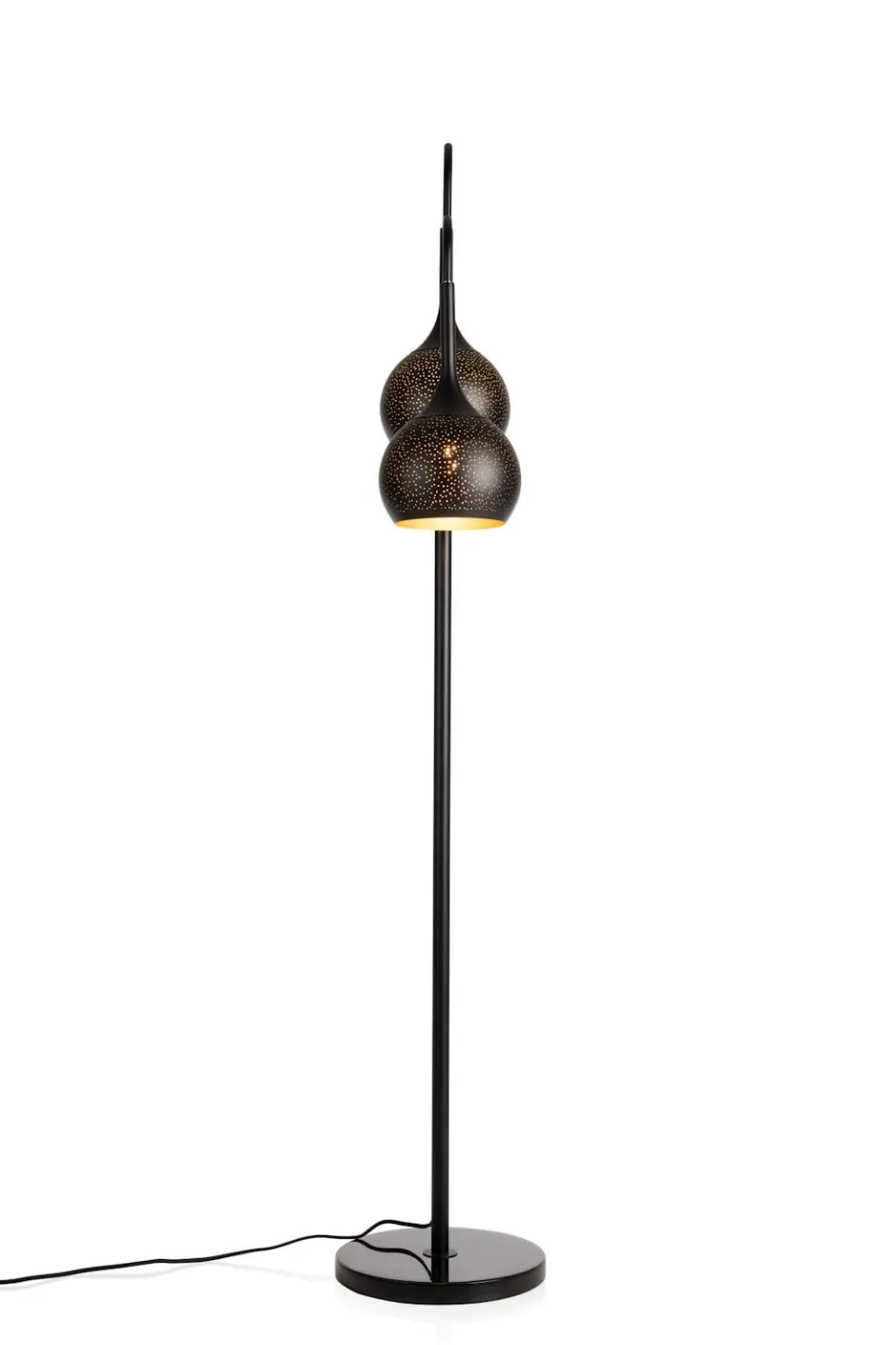 Ben je op zoek naar een stoere vloerlamp die gezien mag worden? Lamp ARJEN uit de COCOmaison collectie is een absolute eyecatcher voor jouw woonruimte. ARJEN is een metalen, zwart met goudkleurige vloerlamp van 165 cm hoog met twee naar beneden gebogen armaturen. De gaatjes in het metaal creëren een prachtig lichteffect tegen het plafond en de muur. De lamp is dimbaar, dus je bepaalt zelf de sfeer die bij het moment past. De lichtbronnen zijn niet inbegrepen. Kijk ook eens naar de andere metalen lampen uit de ARJEN-serie.