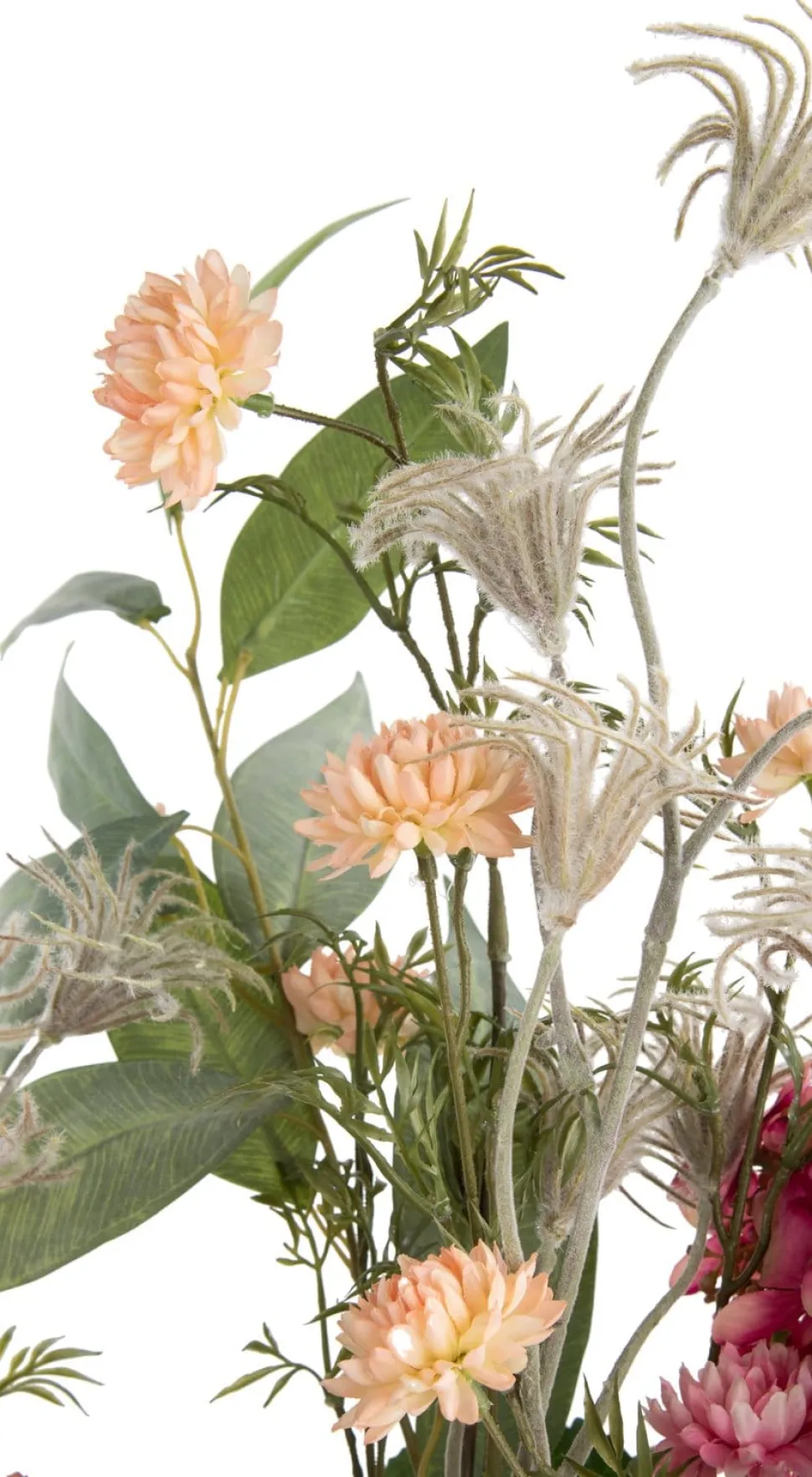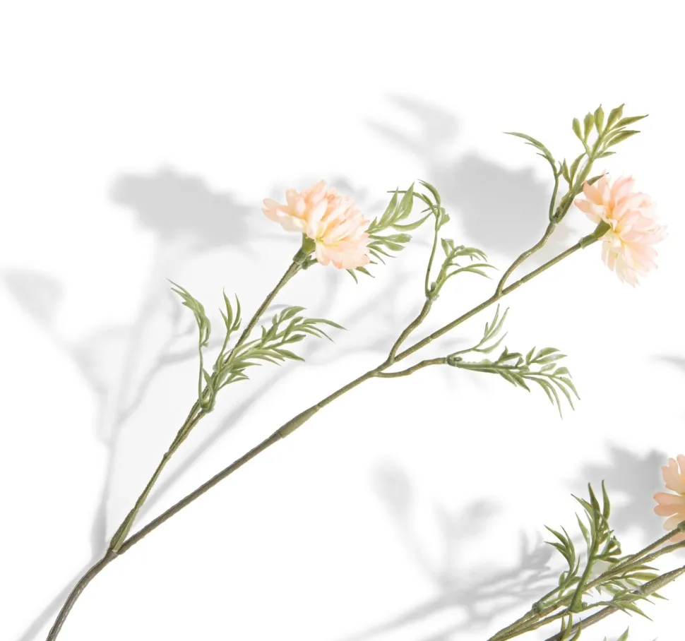 BALL MUM SPRAY is een kleurrijke tak met fijne groene blaadjes en twee bloemen. Een fraaie tak van 93 cm die je solo in een hoge vaas kunt zetten, maar het ook heel goed doet in een veldboeket, waarin je verschillende takken uit het COCOmaison assortiment samenvoegt. Zo’n boeket kun je helemaal zelf samenstellen, in ton sur ton kleuren of juist in een zomerse kleurenmix. BALL MUM bestaat behalve in deze zachtoranje uitvoering ook in een lichtroze variant.
