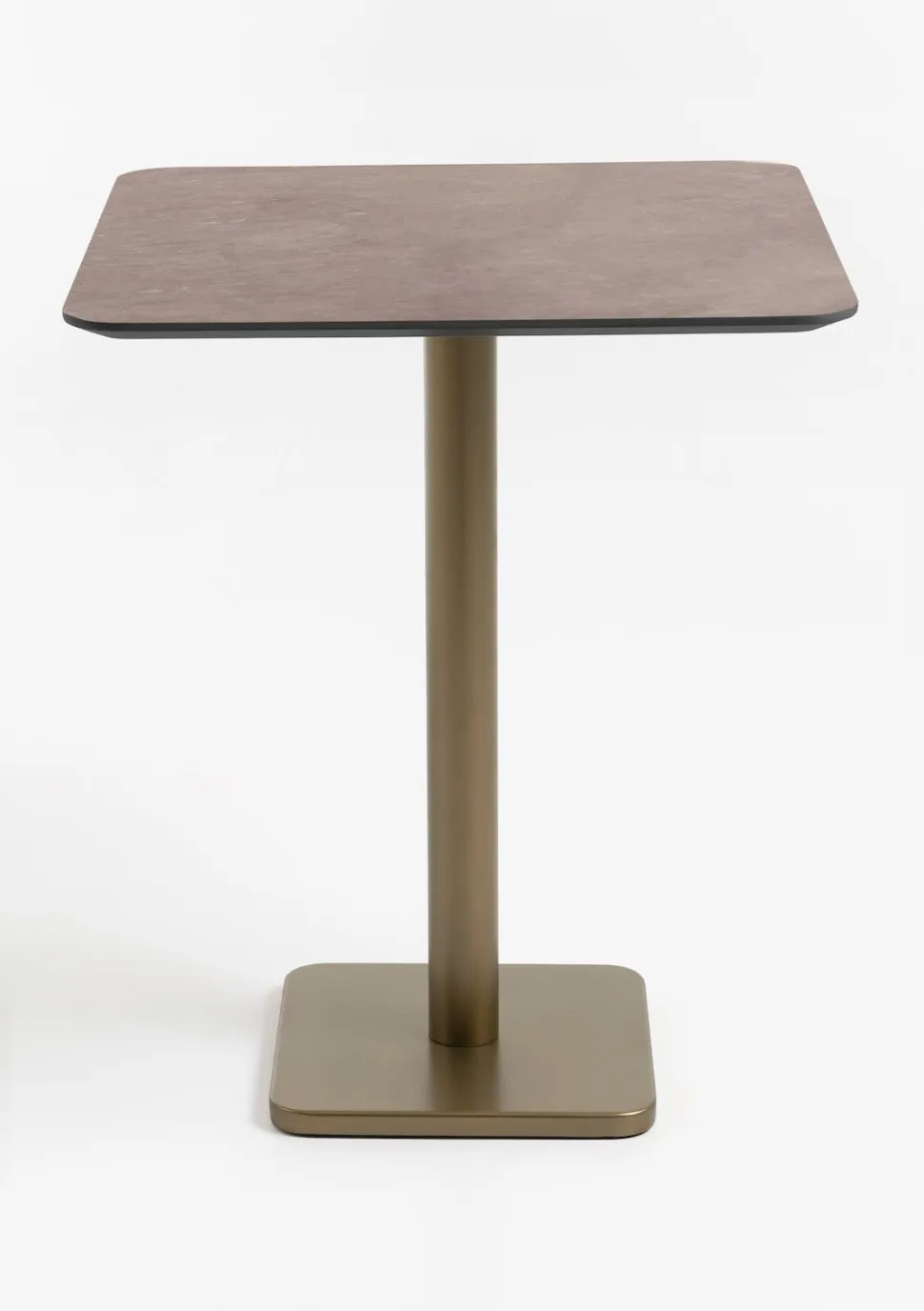 Klein (eet-)hoekje inrichten? COCOmaison heeft dé oplossing voor je! In onze Brest-serie vind je namelijk heel veel leuke bistro- en bartafeltjes. De tafels hebben allemaal een metalen poot, die verkrijgbaar is in goud of zwart en een blad van eikenhout, steen of marmer. Je kunt daarnaast telkens kiezen uit een ronde, vierkant of rechthoekige variant. Door al die verschillende uitvoeringen kun je uit maar liefst verschillende 72 tafeltjes kiezen! Superhandig én stijlvol dus! Dit is de vierkante bartafel van 75 x 75 cm met een goudkleurige poot en een blad van steen in kleur roest.