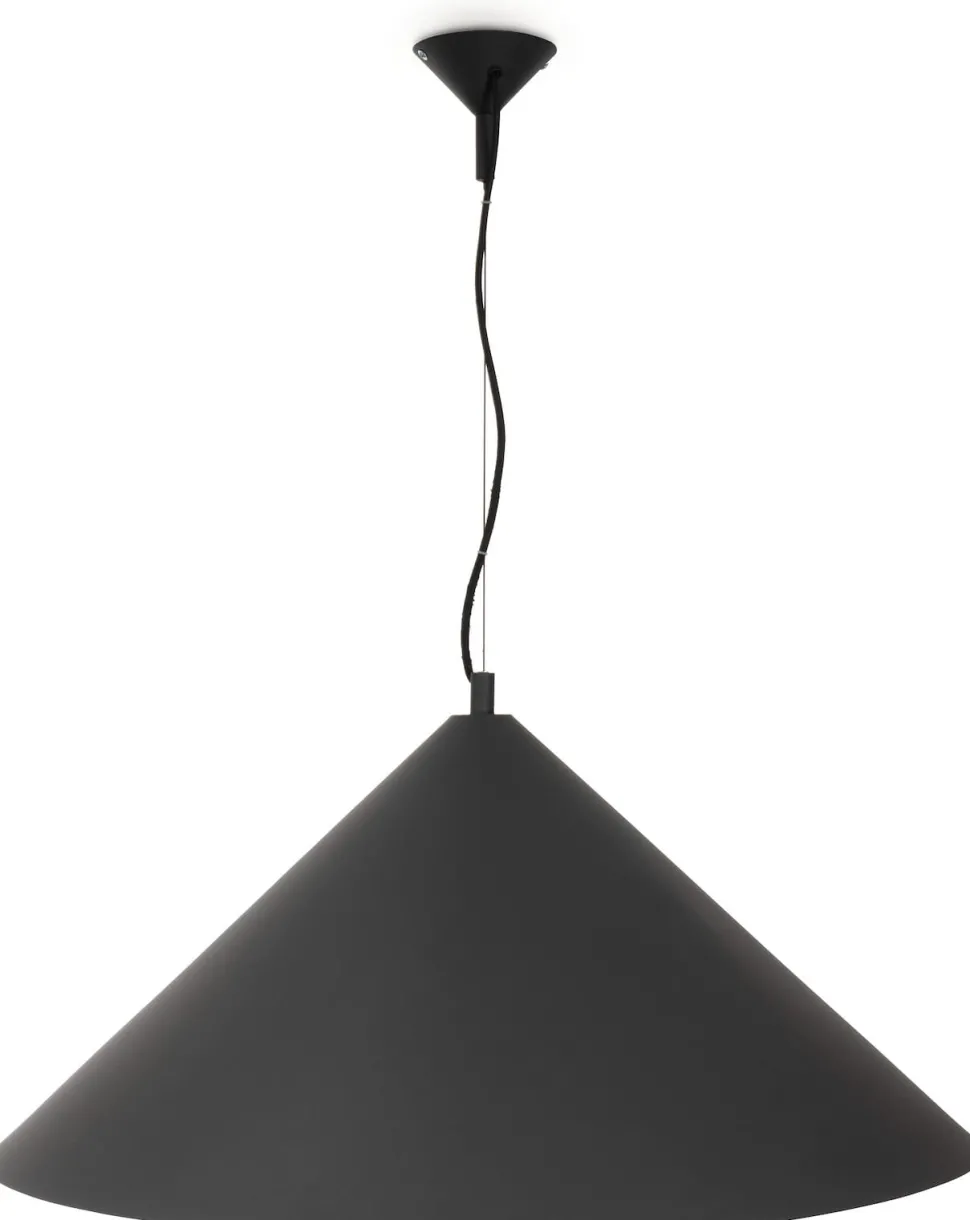 In de lampenserie Daan van COCOmaison vind je een hanglamp, een tafellamp en een vloerlamp. Deze hanglamp is echt iets voor jou als je houdt van een strak en minimalistisch design. De metalen lamp is uitgevoerd in een tijdloze, matzwarte kleur en is verstelbaar tot een hoogte van 130 cm. De grote kap heeft een diameter van 82 cm en daarmee is dit een mooie, subtiele blikvanger.