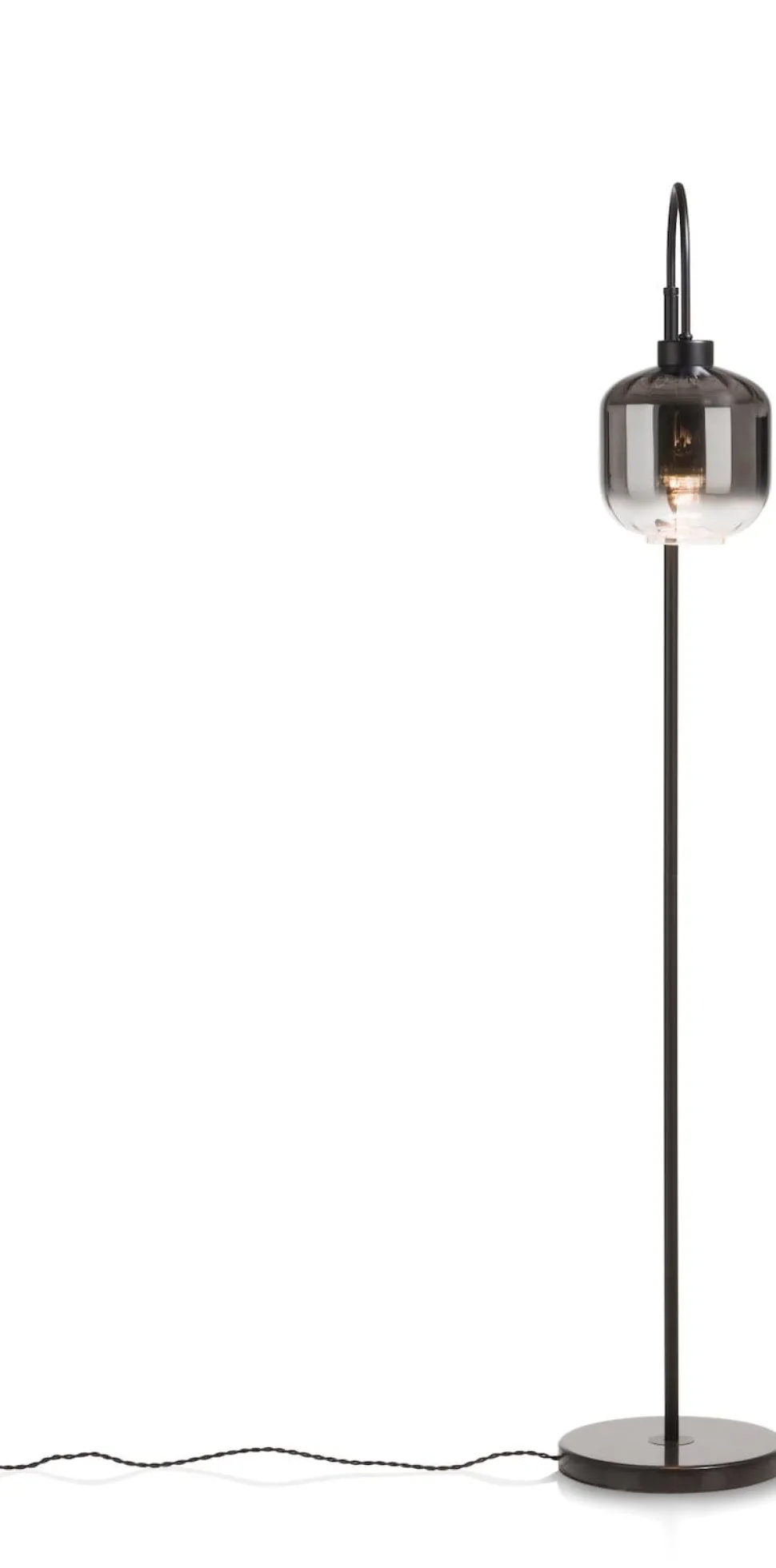 Een ware design eyecatcher in exclusieve glamour stijl, dat is deze prachtige staande lamp uit de ESSEX serie van COCOmaison. De lamp staat op een chique zwart marmeren voet en heeft een totale hoogte van 165 cm. Net zoals de andere lampen uit deze serie, heeft ook deze staande lamp een tijdloze antraciet kleur en een ‘bol’ van smoke glas dat zorgt voor een zacht en diffuus licht in de ruimte. Inclusief zwarte twisted kabel met dimmer, exclusief lichtbron; vergeet deze niet te bestellen (1 x LED E27).