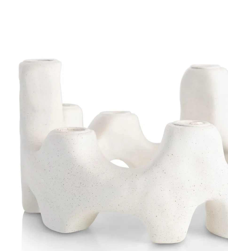 In deze leuke ronde kandelaar van COCOmaison passen maar liefst 9 dinerkaarsen. De JET kandelaar heeft een doorsnede van zo’n 26 cm neutraal en een variabele hoogte tot maximaal 14 cm. De kleur is neutraal wit, dus je kunt er elke kleur kaars in zetten die je wilt of meerdere kleuren combineren. Helemaal trendy wordt het als je spiraal-kaarsen of dip-dye kaarsen gebruikt en wil je variëren met de seizoenen, kies dan bijvoorbeeld geel met Pasen en rode, groene of metallic kaarsen met de feestdagen. Zo heb je het hele jaar rond plezier van deze kandelaar!