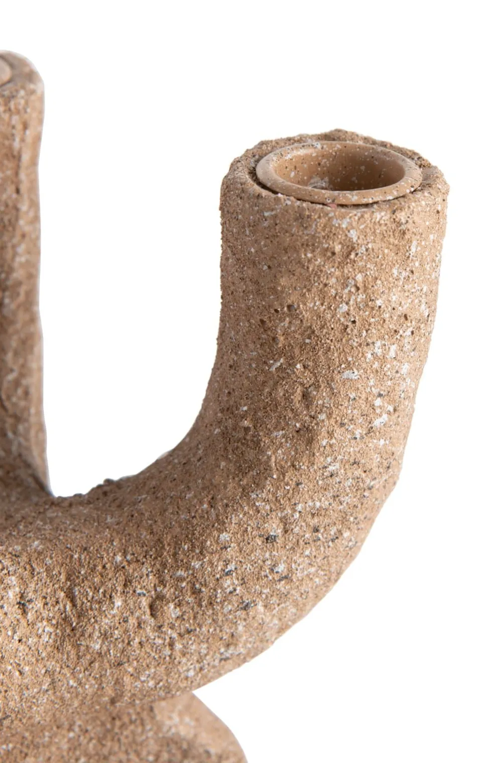 De kandelaar JUNE van COCOmaison lijkt een archeologische vondst van een oude beschaving. Met zijn pure, ambachtelijke design past hij echter helemaal in de laatste interieurtrends. Hij heeft een ruwe steenlook en een lichtbeige kleur. De kandelaar is 27 cm hoog en is geschikt voor 3 dinerkaarsen. Wil je de kandelaar extra laten shinen, kies dan ook kaarsen in een bijzondere vorm of kleur. JUNE is ook verkrijgbaar in een iets hogere uitvoering waarin 2 kaarsen passen.