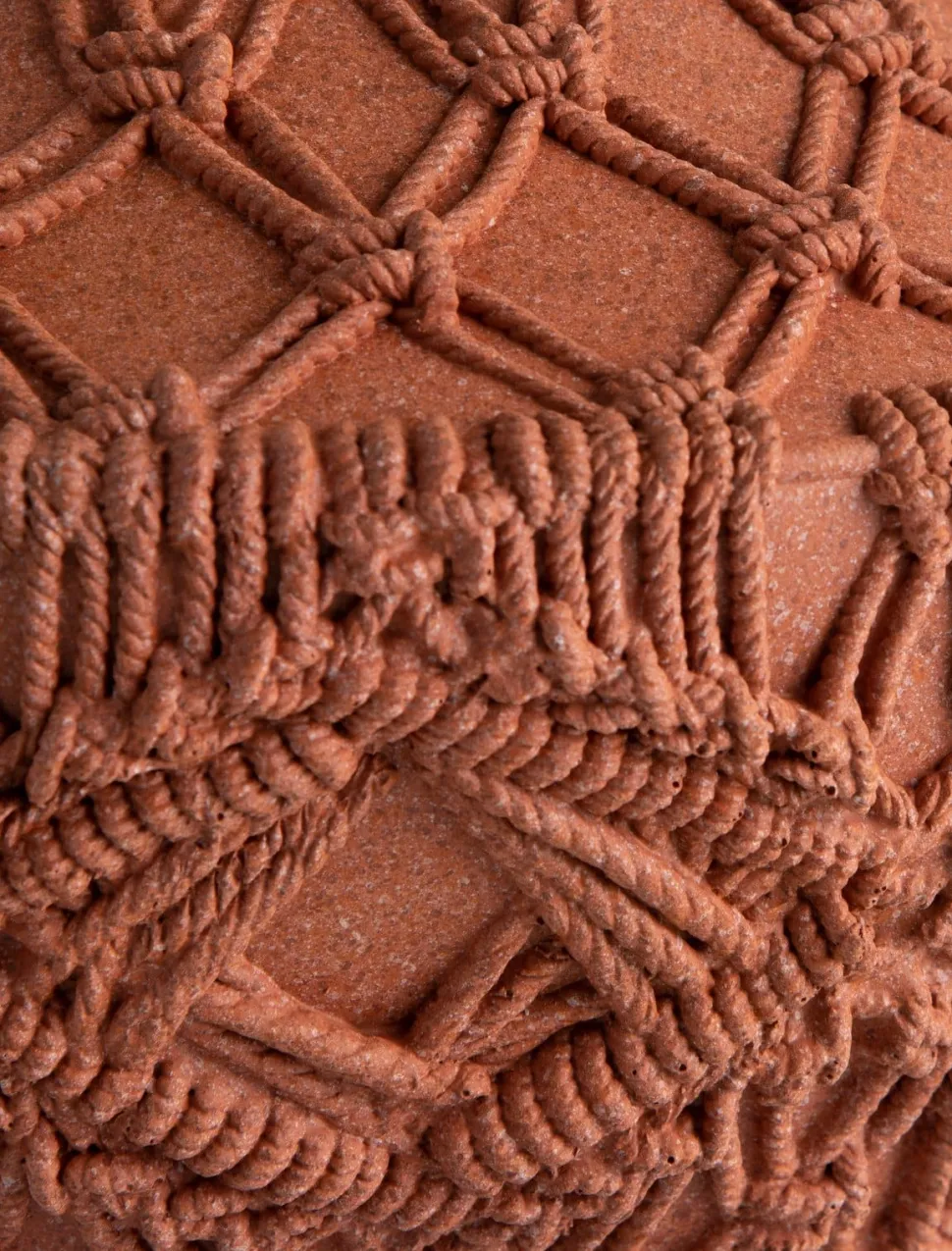 De 70’s maken een comeback in interior design, maar dan wel op een minder uitgesproken en meer verfijnde manier. Deze MAEVE vaas van COCOmaison is daarvan een goed voorbeeld. Het is een polyresin vaas in terracotta kleur met een macramé reliëf op de buitenkant. De vaas is 33 cm hoog en heeft een doorsnede van 31 cm. Een vergelijkbaar motief zie je ook terug op de bijpassende pot die 26 cm hoog en 28 cm breed is.