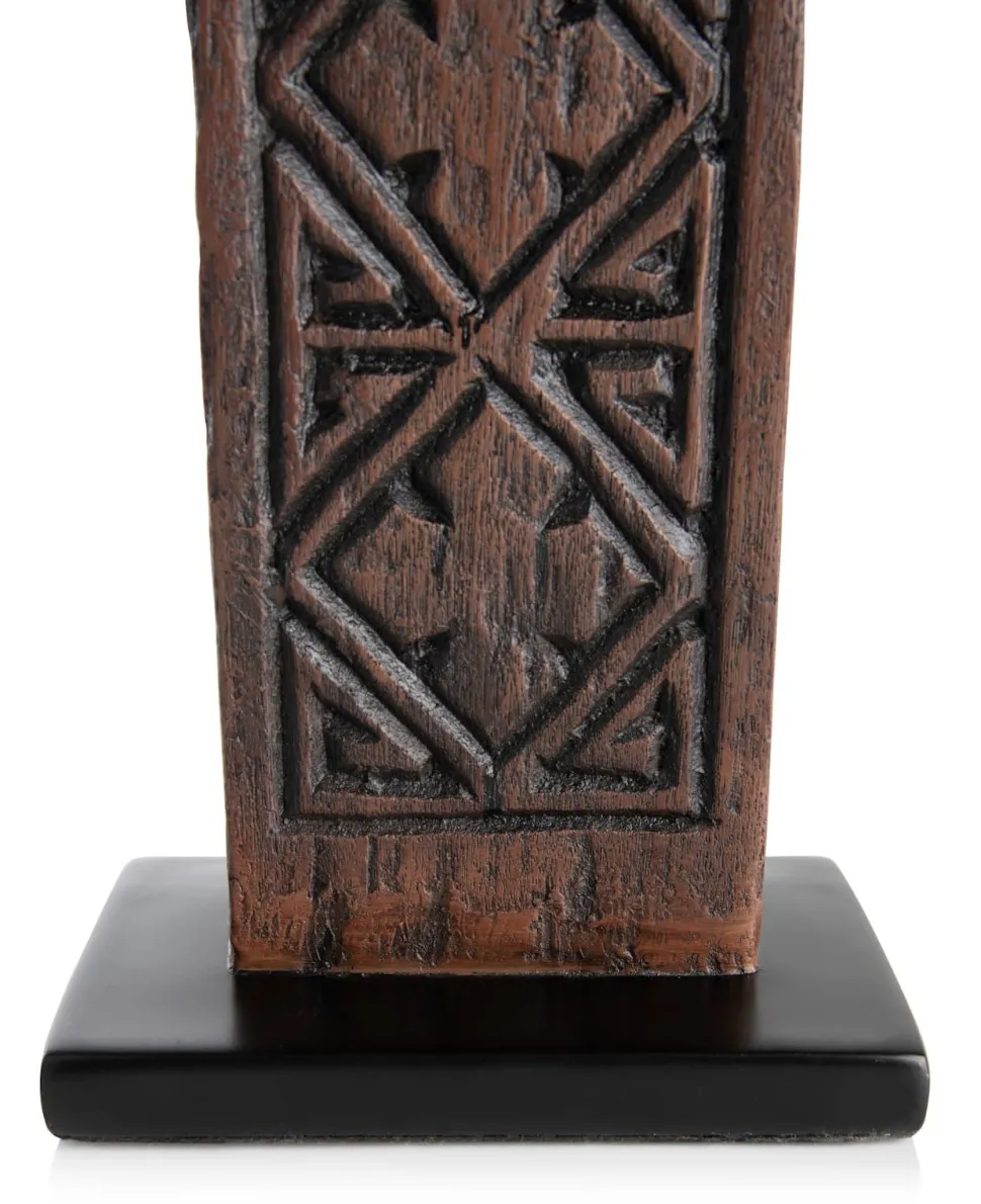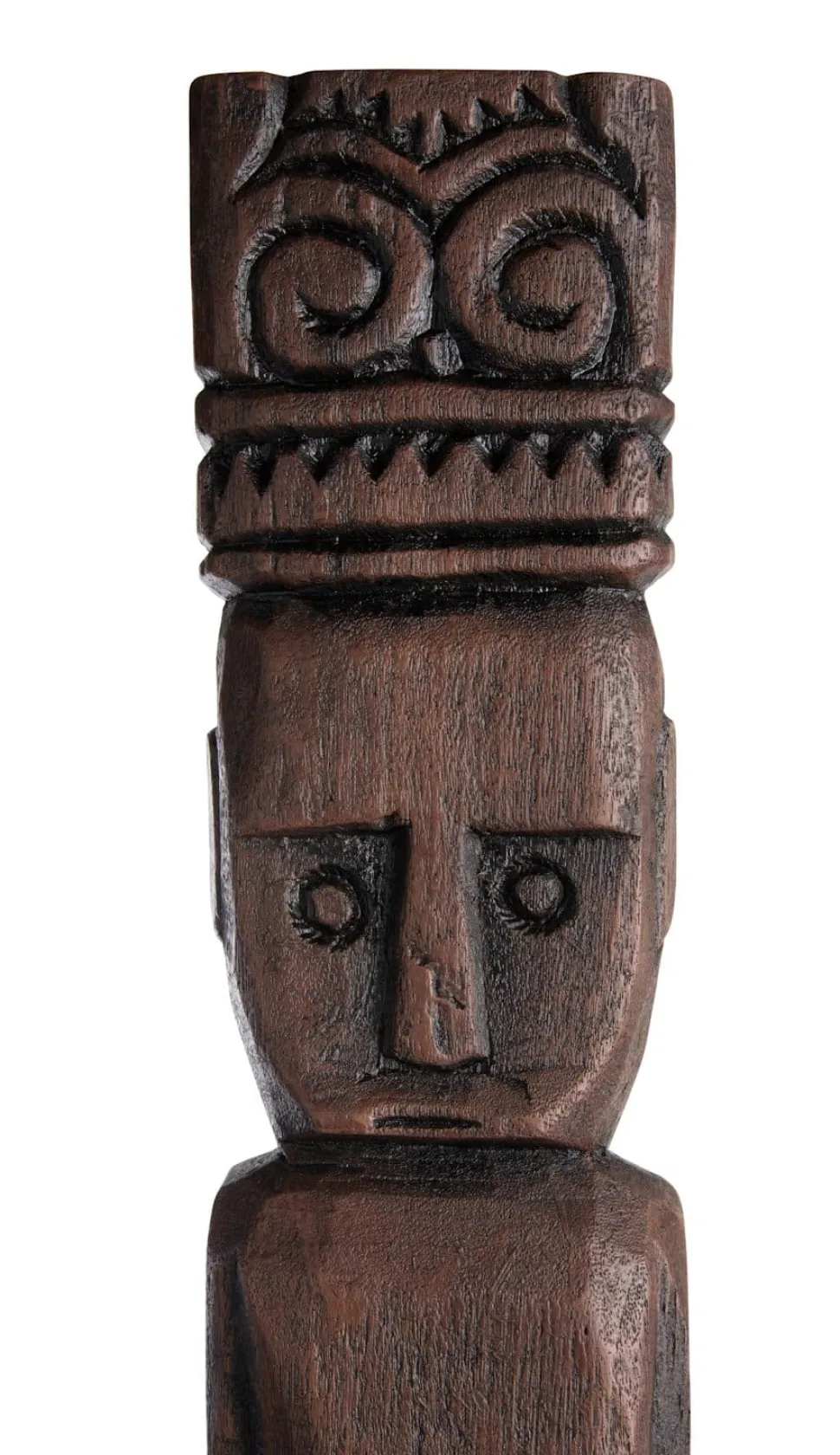 Dromen van verre oorden is altijd fijn toch? De beeldenserie MILAN van COCOmaison brengt je onmiddellijk in de sfeer van exotische plekken met witte stranden en zon in overvloed. Elk beeld is handgekerft uit lichte kunsthars en daardoor uniek. De beelden zijn donkerbruin en hebben een verweerde houtlook, waardoor je ze amper van originele houtsnijwerken kunt onderscheiden. Dit beeld is 86 cm groot, zijn ‘broertjes’ variëren in grootte van 62 tot 75 cm. Plaats er een of twee op een tafel of buffetkast en droom heerlijk verder tot je volgende vakantie!