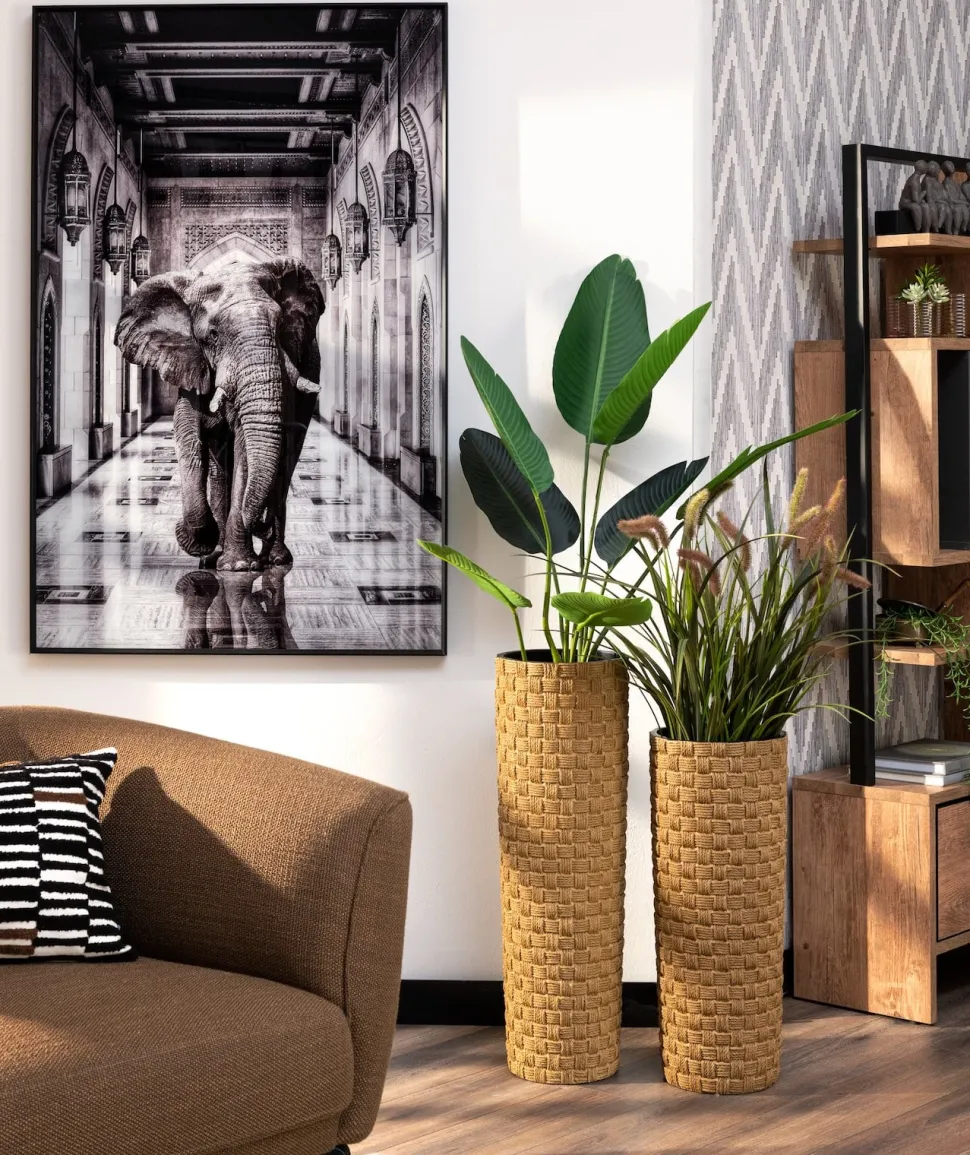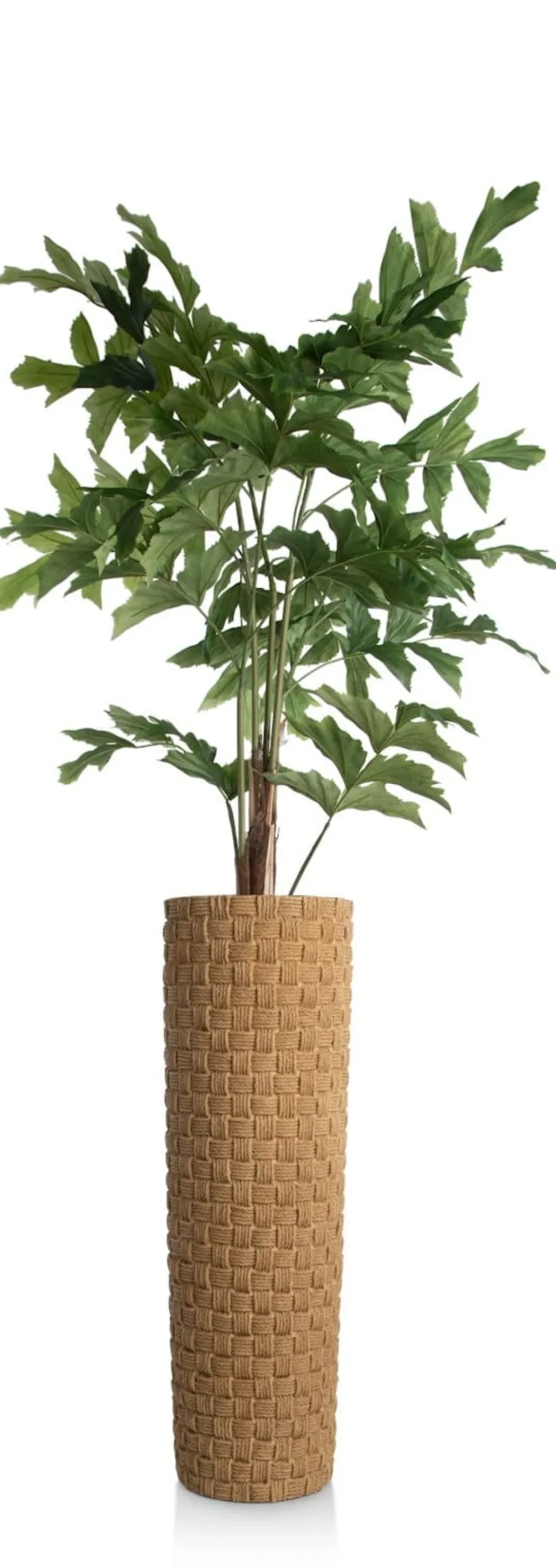 Heb jij groene vingers en ben jij trots op je eigen ‘jungle’ thuis? Zet jouw lievelingsplant dan letterlijk op een voetstuk in de prachtige hoge pot NOUD. Deze plantenpot van COCOmaison lijkt van gevlochten vlas, maar is in werkelijkheid gemaakt van licht maar stevig en waterdicht kunsthars. De pot is 84 cm hoog en heeft een doorsnede van 27 cm en is er ook in een iets kleinere variant. PS. Is ‘echt groen niét helemaal jouw ding, zet er dan een grote kustplant of een aantal lange pampastakken in. Kleine moeite, groot effect!