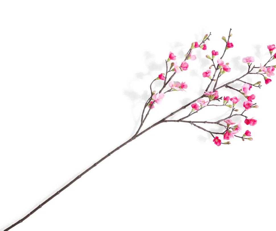 Word jij ook zo vrolijk van bloesem in het voorjaar? Lange takken met knoppen die op uitbarsten staan kondigen luid de zomer aan. Deze QUNINCE SPRAY, oftwel kweepeerbloesemtak heeft dieproze knoppen en lichtroze bloemen, en kun je samen met andere kunstbloemen uit het COCOmaison assortiment prachtig combineren tot een kleurrijk voorjaarsboeket. Een enkele bloesemtak in een grote vaas past overigens ook helemaal in de Japandi stijl die nu trendy is.
