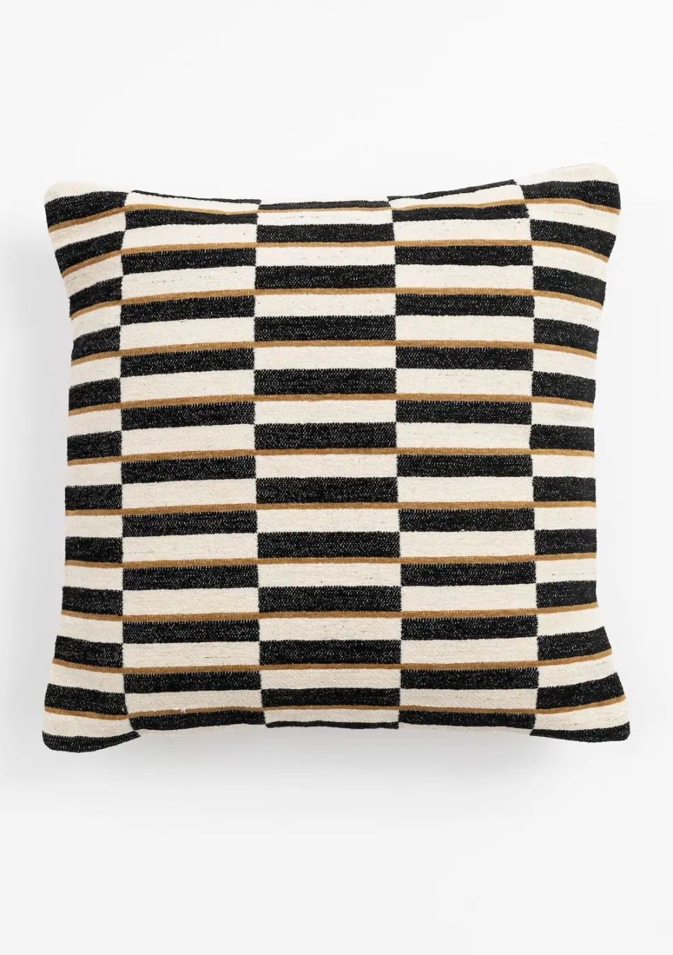 Ontdek de perfecte balans tussen modern en tijdloos met het COCOmaison Riff kussen. Dit sierkussen, met een afmeting van 50 x 50 cm, is een stijlvolle toevoeging aan elk interieur. De hoes is gemaakt van katoen en heeft een gestreept patroon in zwart, wit en bruin, wat zorgt voor een speelse uitstraling. Het Riff kussen past moeiteloos in zowel moderne als klassieke woonstijlen en biedt een subtiele decoratieve touch. Voeg een vleugje elegantie toe aan je woonruimte met het Riff kussen uit onze collectie en geniet van de tijdloze charme die het brengt.