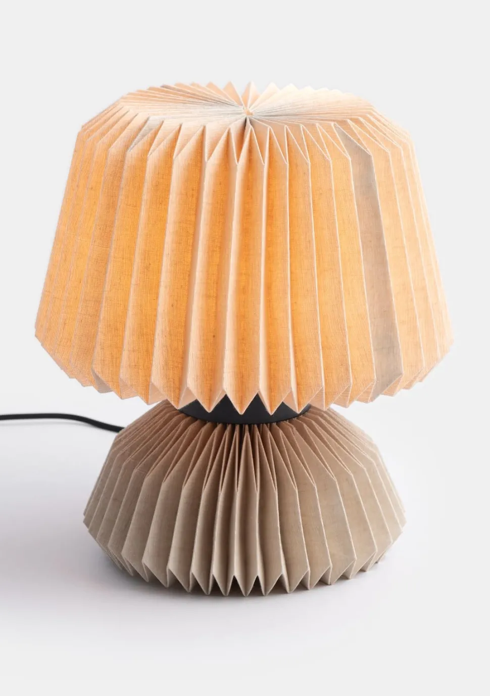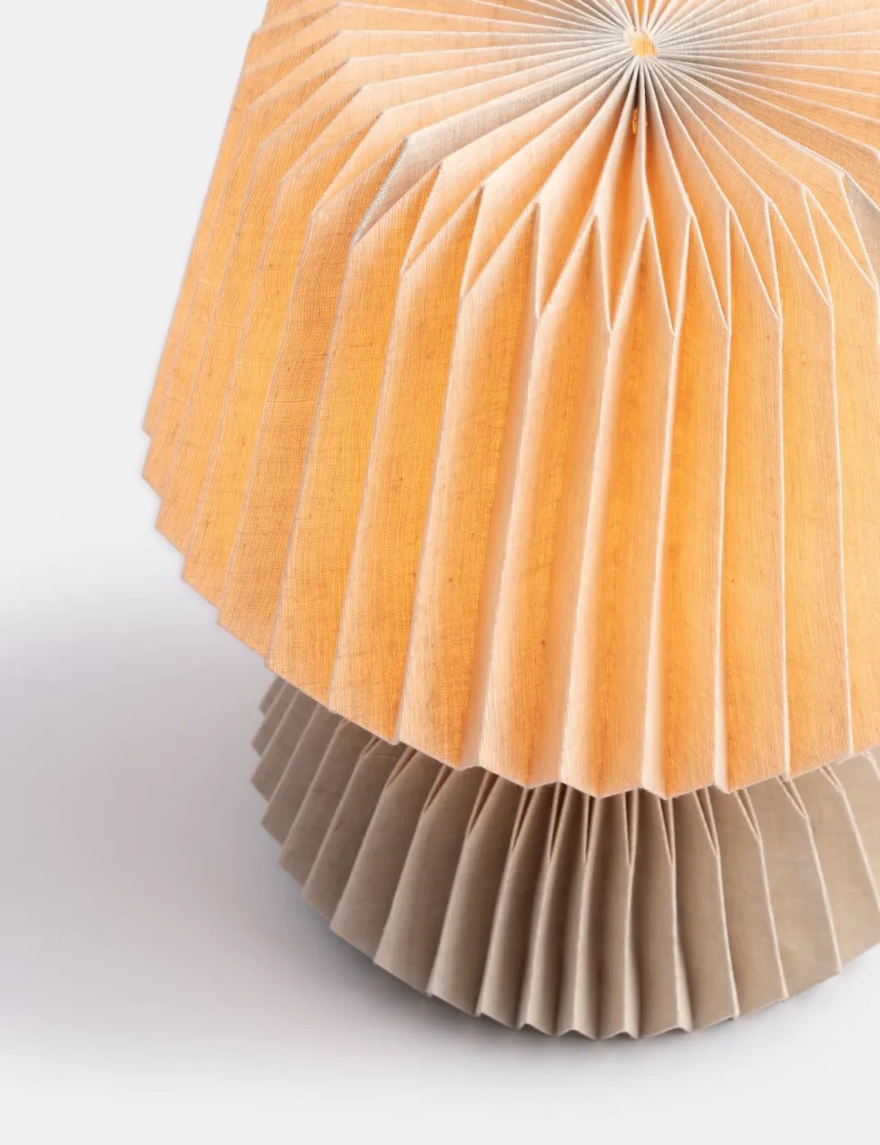 COCOmaison is dol op verrassende ontwerpen en dat zie je zeker terug in de Rikke tafellamp. De kap en voet van deze bijzondere lamp zijn gemaakt van stevig papier dat als smockwerk gevouwen is. Daarmee krijgt de lamp een origami-achtige uitstraling die helemaal past in de Japandi woonstijl. De hoogte is 33cm en de doorsnede 29cm, maar het is vooral het materiaal dat opvalt. Het papier heeft een naturel kleur en is semi-transparant, zodat de lamp een prachtig gedempt warm licht verspreidt als hij aan is. Maar ook als hij overdag uit is, is het een opvallend design object in huis.