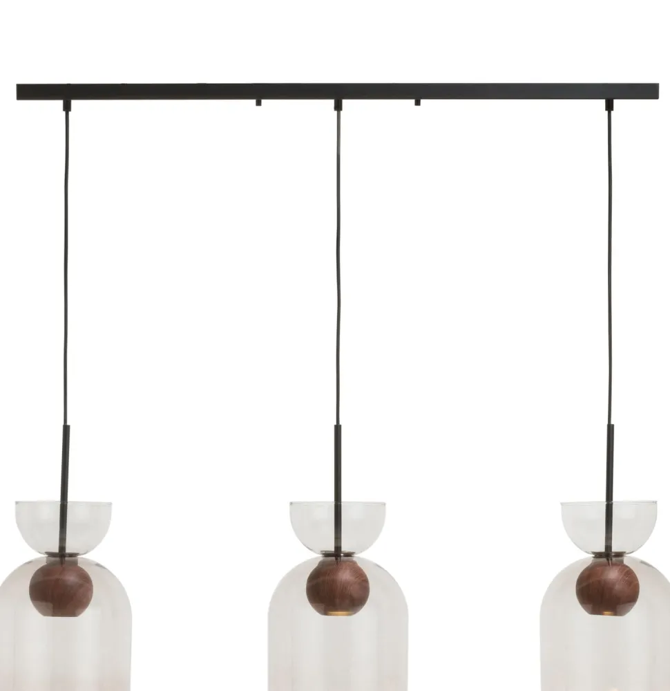 Hanglamp Skylar is een stijlvolle hanglamp met drie lampen. Door de mooie balans tussen de materialen in glas en metaal past Skylar perfect in elk interieur. De lamp is afgewerkt met bollen in houtlook en 3 moderne lampenkappen in antraciet. De hanglamp is in hoogte verstelbaar en kan opgehangen worden variërend van 120 cm tot 160 cm. En door de passende externe dimmer kan het licht worden aangepast naar de gewenste sfeer. De lamp is ook verkrijgbaar als wand-, tafel- of vloerlamp. (Lichtbron: 3* GU10 10W LED) (Let op: lichtbron niet inbegrepen)