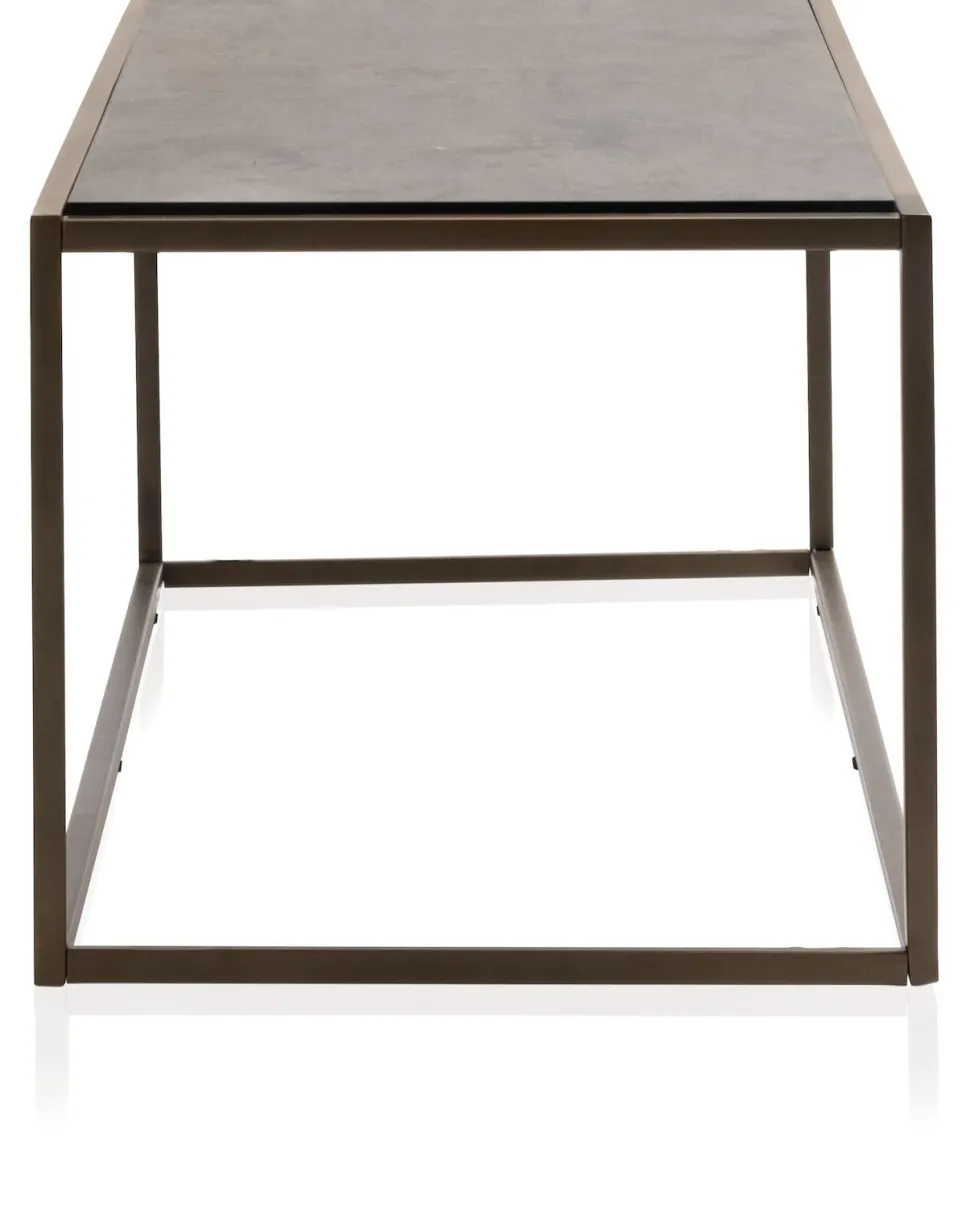 De Stand Up serie van COCOmaison omvat diverse tafeltjes met een omkeerbaar blad, waarmee je de uitstraling van de tafel kunt veranderen door simpelweg het blad om te draaien. Wat deze salontafel extra speciaal maakt, is dat hij door zijn afmeting van 40 cm breedte, 100 cm diepte en 35 cm hoogte ook nog eens perfect tussen verschillende delen van een elementenbank past. Op die manier kun je je bank dus uitbreiden met een tussentafel voor een leuk effect. Deze variant heeft een goudkleurig metalen frame en een stonelook blad in koper of antraciet, maar er bestaat ook nog een andere kleurcombinatie. Ook handig: Het blad van HPL is onderhoudsvriendelijk.