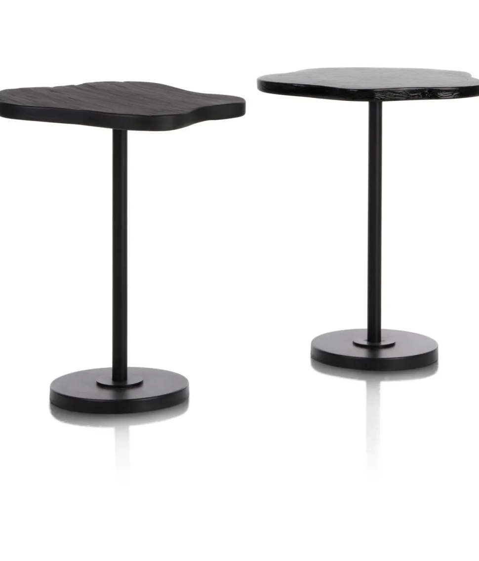 Laat je interieur stralen met de unieke Tina bijzettafel van COCOmaison! Dit tafeltje heeft een blad in een organische vorm, een diameter van 40 cm en een hoogte van 50 cm. Het metalen frame met zwarte finish geeft een eigentijdse touch, terwijl het houtnerf-blad in het zwart een natuurlijk element toevoegt. Tina is niet alleen functioneel, maar ook een speelse aanvulling die perfect te combineren is met andere bijzettafels.