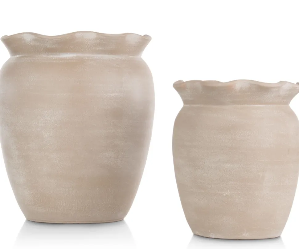 De oorsprong van de naam WAVE laat zich makkelijk raden: deze stijlvolle reeks potten en schalen kenmerkt zich door een verfijnde golfende rand. WAVE van COCOmaison wordt geproduceerd in Portugal, van 100% aardewerk. Elk object uit deze serie is met de hand gemaakt en er zijn dus geen twee stuks hetzelfde! De kleur is beige, maar ook in de kleurnuance is iedere pot uniek. De pot is verkrijgbaar in twee maten, waarvan dit de grootste is. Deze pot heeft een hoogte van 40 cm en een doorsnede van 26cm.