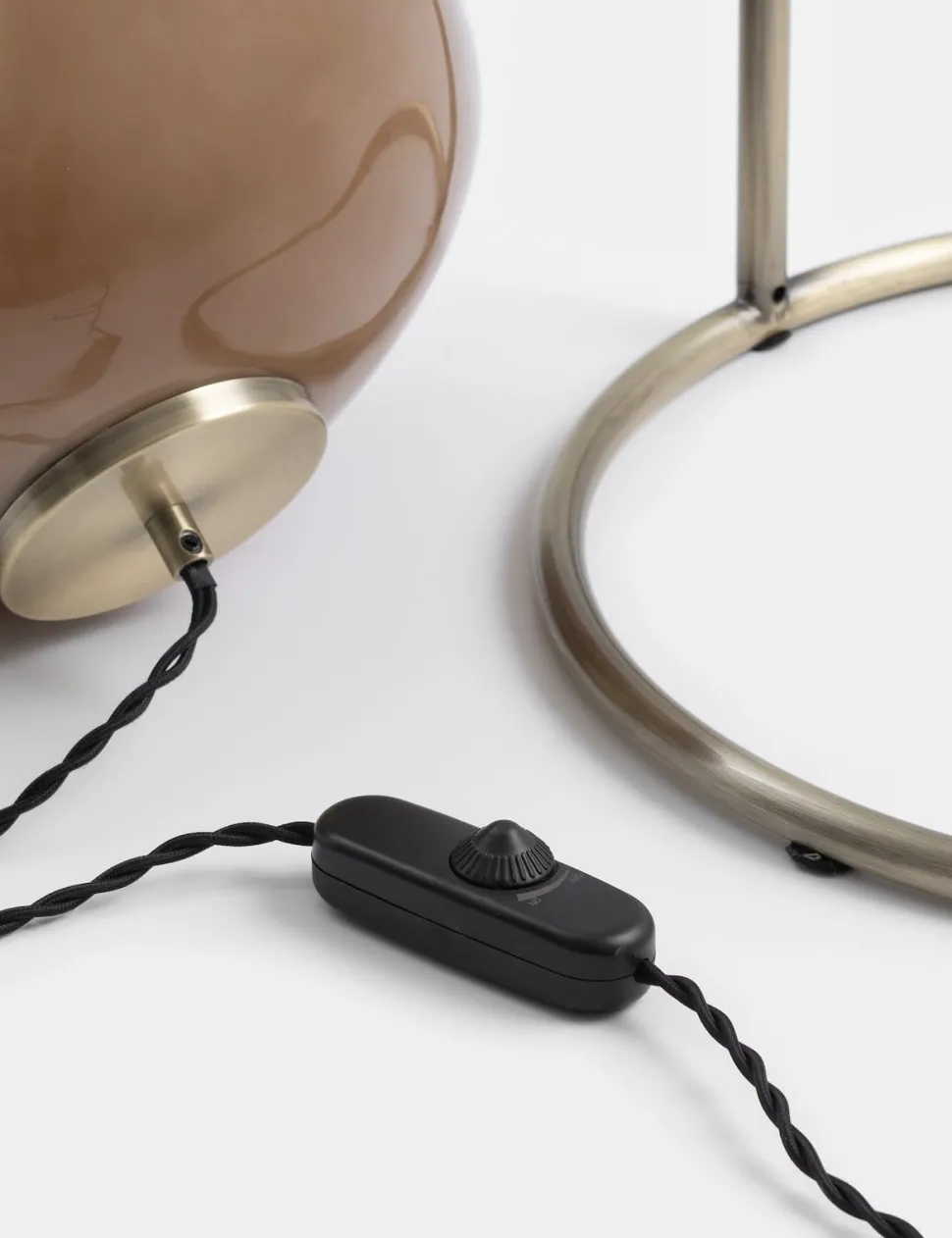 De Abby vloerlamp van COCOmaison past helemaal in de trend van natuurlijke vormen. De vorm van deze lamp is duidelijk op een kiezelsteen geïnspireerd, maar dan vergroot naar een grootte van 40×40 en op een metalen statief geplaatst. De totale hoogte van de lamp is daardoor 141cm. De bol is gemaakt van lichtbruin glas en krijgt een mooie warme gloed als hij aan is. Wat helemaal fijn is, is dat de lamp dimbaar is, en dus zowel geschikt voor sfeerverlichting als om bij te lezen. Een hanglamp en tafellamp maken deel uit van dezelfde Abby-serie.