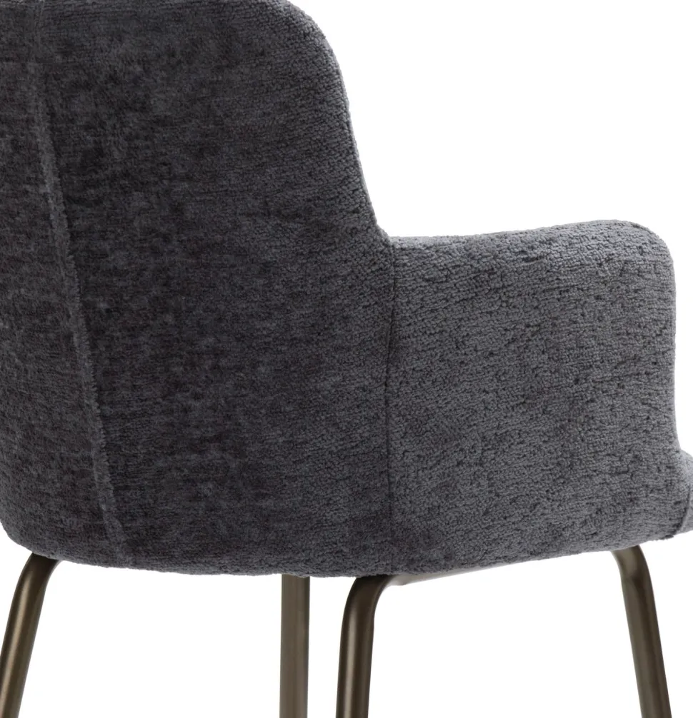 Een stijlvol goudkleurig frame, een zachte, aaibare stof, een hippe kleur én comfortabele armleuningen; Armstoel Olle heeft het allemaal! Deze mooie stoel van COCOmaison heeft een zithoogte van 49,5 cm en is verkrijgbaar in vier trendy kleuren, die je ook perfect met elkaar kunt combineren. Deze antracietkleurige variant kan in eider geval niet wachten om aan jouw eetkamertafel te staan!