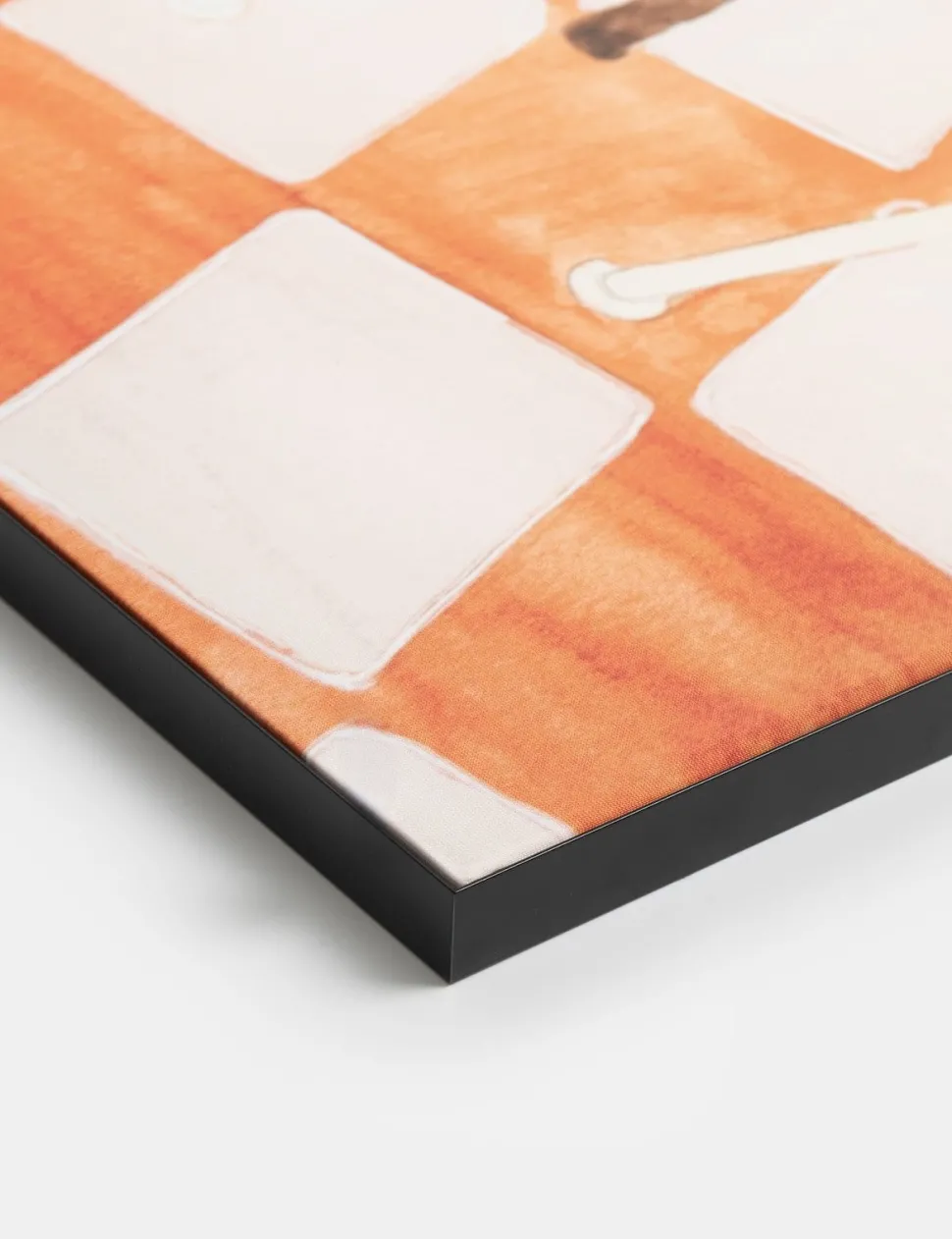 Laat je interieur stralen met Aurora, een stijlvol aquarelontwerp van Pret a Presse. Het schilderij toont een vrouw in een rode badpak en grote hoed, die via een ladder een zwembad in stapt – een moment van rust, zon en elegantie. De warme kleuren, het oranje-witte tegelpatroon en de heldere lucht brengen een zomerse sfeer die je ruimte direct opfrist.Aurora is gedrukt op een hoogwaardig polyester doek, speciaal ontworpen voor een verwisselbaar metalen frame. Dit slimme systeem maakt het mogelijk om meerdere kunstwerken uit de collectie eenvoudig af te wisselen. Zo kun je je wanddecoratie aanpassen aan het seizoen, je stemming of een nieuw interieurconcept – zonder gedoe. De aquareltechniek geeft Aurora een zachte, verfijnde uitstraling met transparante kleurlagen en subtiele details. Dit maakt het werk niet alleen visueel aantrekkelijk, maar ook tijdloos.Verkrijgbaar in drie formaten – 70×100 cm, 90×140 cm en 125×185 cm – is Aurora een perfecte keuze voor wie houdt van kunst met karakter én flexibiliteit.