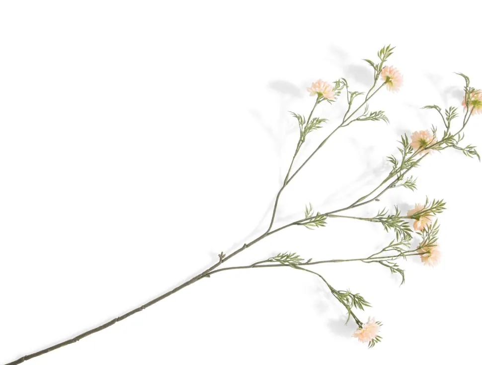 BALL MUM SPRAY is een kleurrijke tak met fijne groene blaadjes en twee bloemen. Een fraaie tak van 93 cm die je solo in een hoge vaas kunt zetten, maar het ook heel goed doet in een veldboeket, waarin je verschillende takken uit het COCOmaison assortiment samenvoegt. Zo’n boeket kun je helemaal zelf samenstellen, in ton sur ton kleuren of juist in een zomerse kleurenmix. BALL MUM bestaat behalve in deze zachtoranje uitvoering ook in een lichtroze variant.