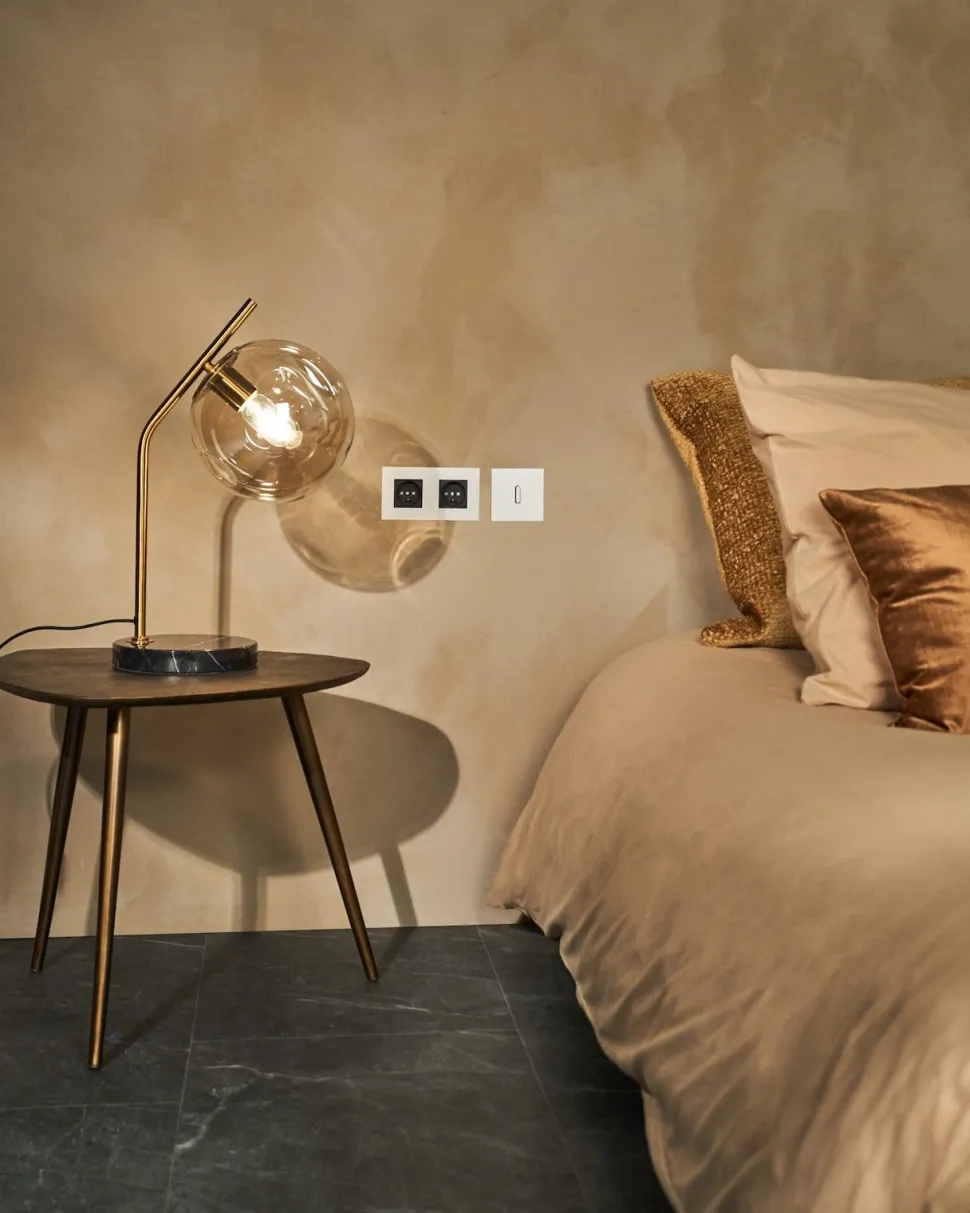 Ben je op zoek naar een chique tafellamp in een mooie goudtint? Deze tafellamp BO uit de collectie van COCOmaison is gemaakt van metaal en heeft een prachtige brass gouden finish. De bol heeft kleine deukjes in het goudkleurige glas, wat zorgt voor een leuk effect. BO is een mooie lamp die direct veel sfeer in huis brengt. Deze lamp is niet dimbaar. Zet ‘m op het tv-meubel, op tafel of op je bureau en je interieur krijgt meteen een luxueuze touch. BO is 51 cm hoog. Je shopt hem exclusief lichtbron. BO is er ook als hanglamp en als vloerlamp!