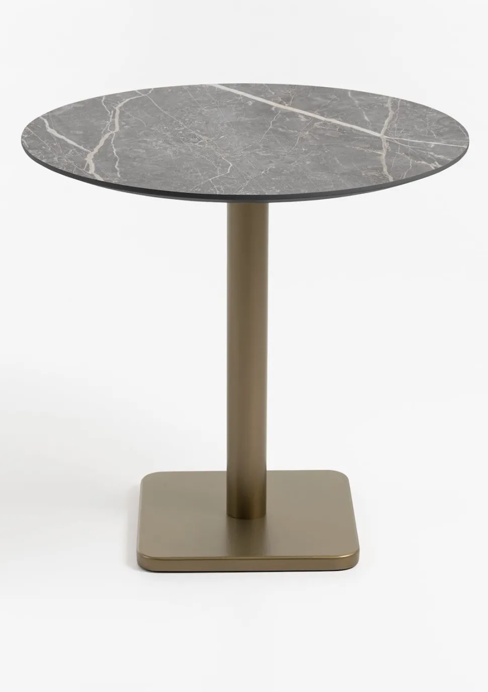 Klein (eet-)hoekje inrichten? COCOmaison heeft dé oplossing voor je! In onze Brest-serie vind je namelijk heel veel leuke bistro- en bartafeltjes. De tafels hebben allemaal een metalen poot, die verkrijgbaar is in goud of zwart en een blad van eikenhout, steen of marmer. Je kunt daarnaast telkens kiezen uit een ronde, vierkant of rechthoekige variant. Door al die verschillende uitvoeringen kun je uit maar liefst verschillende 72 tafeltjes kiezen! Superhandig én stijlvol dus! Dit is de ronde bistrotafel met een diameter van 80 cm, een goudkleurige poot en een blad van marmer in een lichtgrijze kleur.