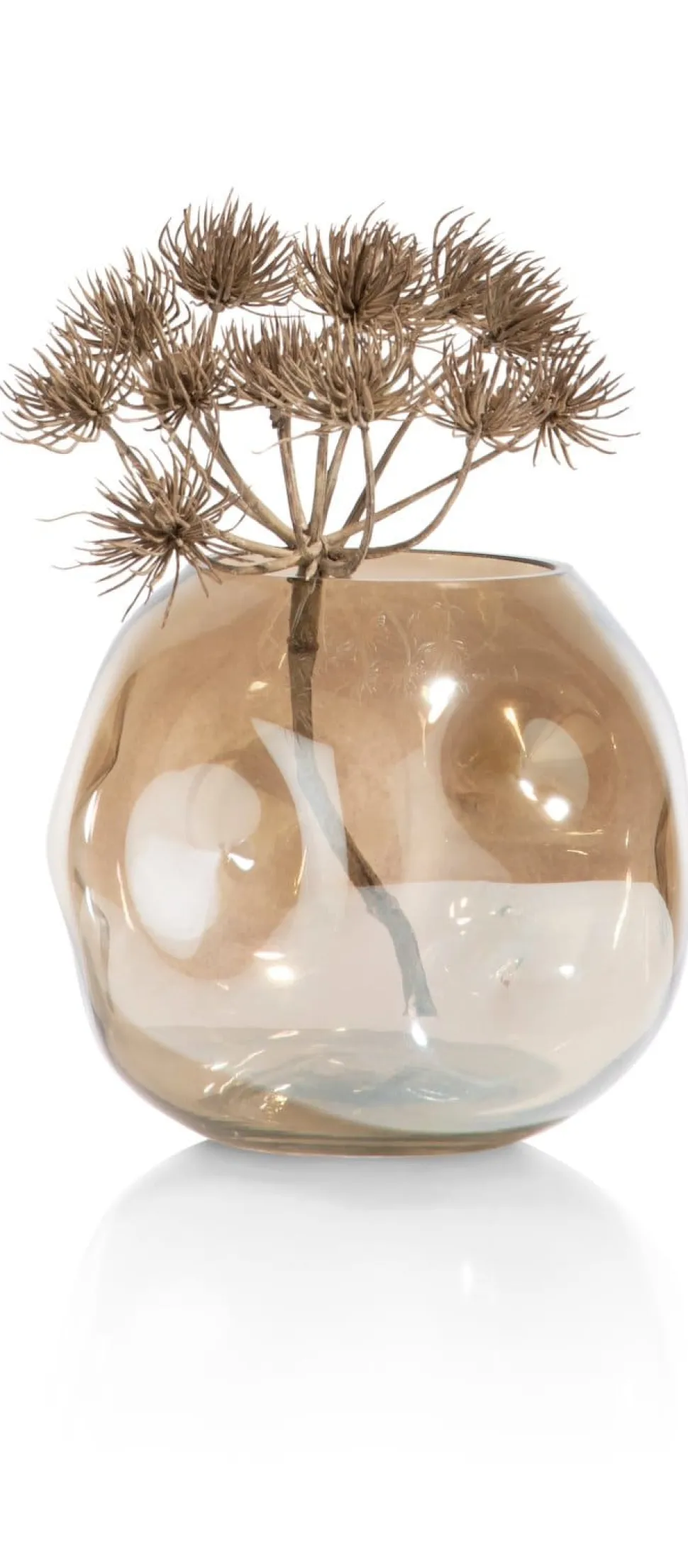 Hou je van vazen en van kunst? Dan geeft deze grijze vaas DON uit de COCOmaison collectie je het beste van twee werelden. DON is een klein bol vaasje van 15 cm hoog en is gemaakt van 100% glas. Het vaasje mag met recht een klein kunstwerkje genoemd worden vanwege de ‘deuken’ in de zijkant en het glanseffect op de buitenkant dat DON een chique touch geeft. DON is 15 cm hoog en is ook verkrijgbaar in twee grotere varianten met een iets andere vormgeving. Onze stylistes inspireren je graag bij het maken van de juiste decoratiekeuzes voor een stijlvol interieur.