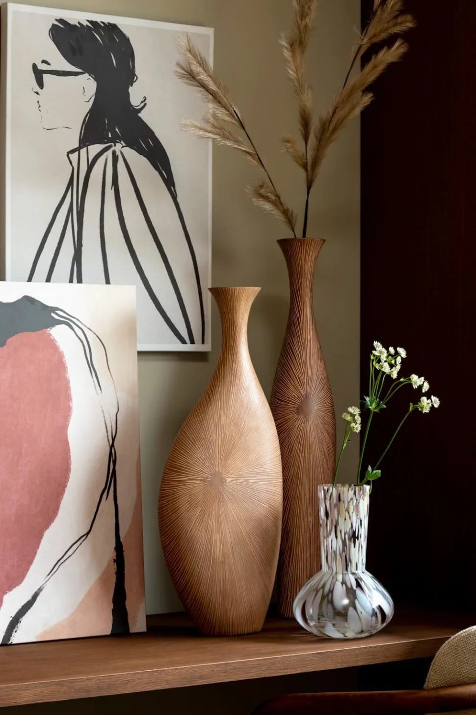 Houd jij van puur design, waarin vormen voor zich spreken? Dan past de GIGI vaas van COCOmaison helemaal bij jouw woonstijl. Deze waterbestendige vaas is gemaakt van polyresin en heeft een simpele houtlook die de strakke vorm benadrukt. De GIGI vaas is leverbaar in twee verschillende formaten; dit smalle en net wat langere exemplaar met een hoogte van 82,5cm en een iets kleinere, bredere versie van 71,5cm. Je kunt ze heel goed solo neerzetten, maar plaats je ze als set, dan springen ze nog meer in het oog.