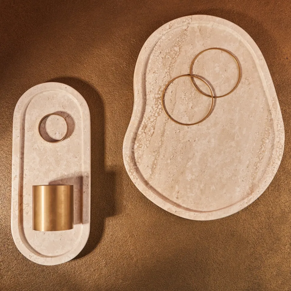 Door de organische vorm en het mooie lichte natuurgesteente, geef je met deze schaal Ira aan elke ruimte een luxe touch. Je kunt Ira echt in elke ruimte en voor van alles gebruiken: In de slaapkamer voor je sieraden, in de hal voor je sleutels, maar ook in de keuken als borrelplank of voor fruit. De schaal van is gemaakt van 100% travertijn en is ongeveer 31 x 40 cm groot. Liever een andere vorm? Bekijk dan de langwerpige schaal Idas in onze COCOmaison collectie.