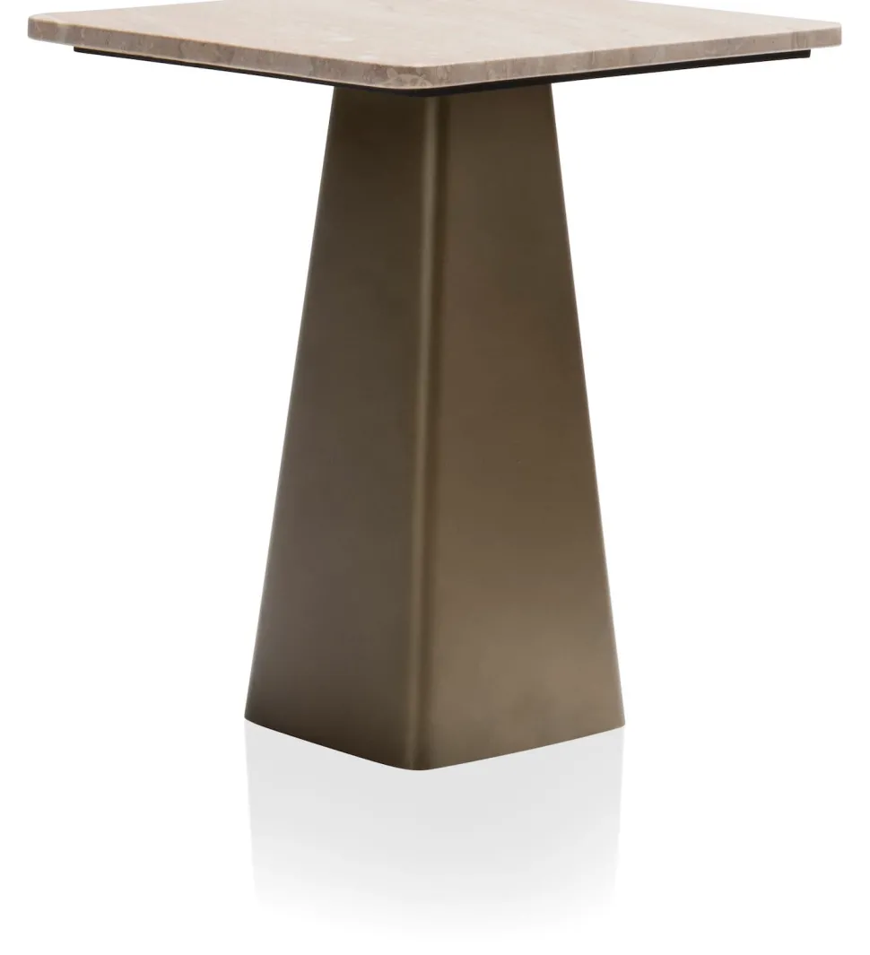 Serie Issy bestaat uit drie prachtige bijzettafels die je los kunt neerzetten of perfect met elkaar kunt combineren als set. Deze tafeltjes van COCOmaison stralen luxe en een klassieke elegantie uit dankzij hun goudkleurige metalen voet en het schitterende crèmekleurige travertijnen blad. Dit is de hoogste en smalste variant met een bladafmeting van 46 x 46 cm en een hoogte van 54 cm. Issy is vervaardigd uit 40% metaal en 60% marmer. Dit meubel is voorzien van een blad van natuursteen. Natuursteen is een natuurlijk materiaal, wat betekent dat elke tafel uniek is. Kleine variaties in kleur, structuur en patroon maken uw meubelstuk exclusief en authentiek.