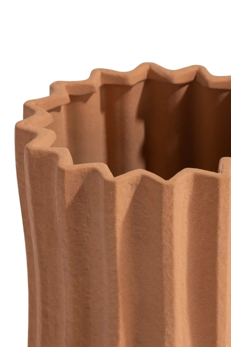 De Jelle vaas van COCOmaison heeft een natuurlijke, rustieke charme over zich. Deze 30 cm hoge keramieken vaas valt op door het subtiele lijnenreliëf op de buitenkant dat doet denken aan de golvende vormen van de landbouwvelden. De vaas heeft eenr uwere structuur, wat zorgt voor een aards gevoel. De Jelle vaas is afgewerkt in een mooie terracotta/oranje kleur en past perfect in iedere ruimte!