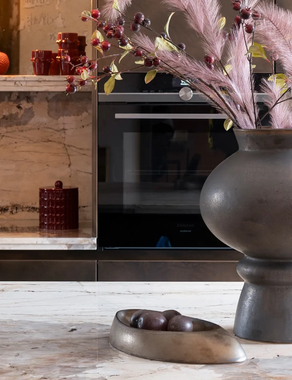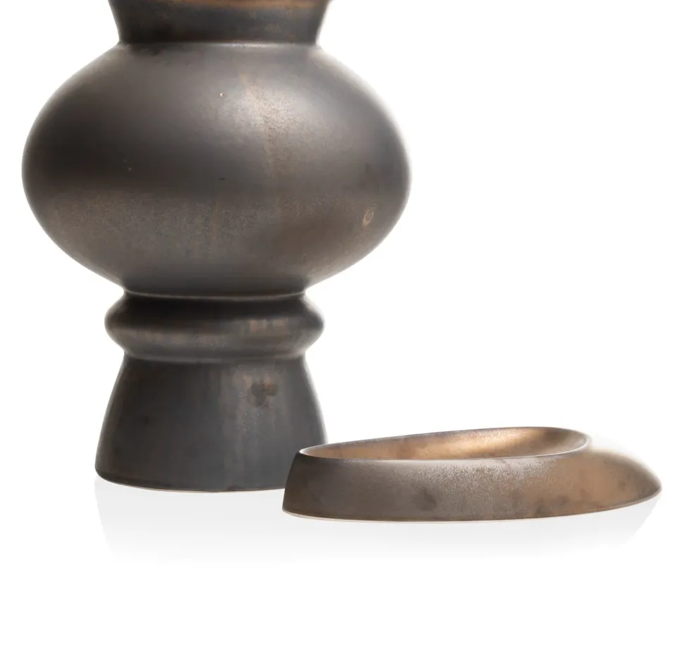 Schaal Lovia is niet alleen bijzonder door de mooie, organsiche vorm, maar ook door de ‘oude’ look die de schaal heeft door de combinatie van de mooie bruine metallic-kleur met hier en daar wat goud. Daardoor heeft deze schaal van 100% keramiek ongetwijfeld een elegante, klassieke uitstraling. Combineer schaal Lovia met de gelijknamige vaas, om de klassieke look compleet te maken. Goed om te weten: De schaal van COCOmaison is ca. 36 x 19 cm groot en 5 cm hoog.