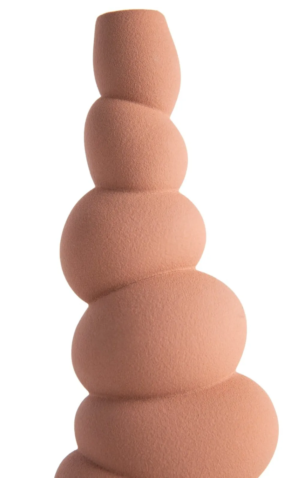 MARIA is een bijzondere kandelaar, gemaakt van keramiek. En niet alleen door de hoogte van 24 cm is het een echte eyecatcher: deze terracotta kandelaar heeft een heel opvallende, bijna wulpse vorm, die bestaat uit gestapelde ringen of bollen. Door de pure, aardse kleur komt het design maximaal tot zijn recht en raaak je er niet snel op uitgekeken. Deze mooie kandelaar van COCOmaison past perfect in een Sophisticated 70’s interieur. Is dit helemaal jouw stijl, weet dan dat we een bijpassende vaas verkopen.