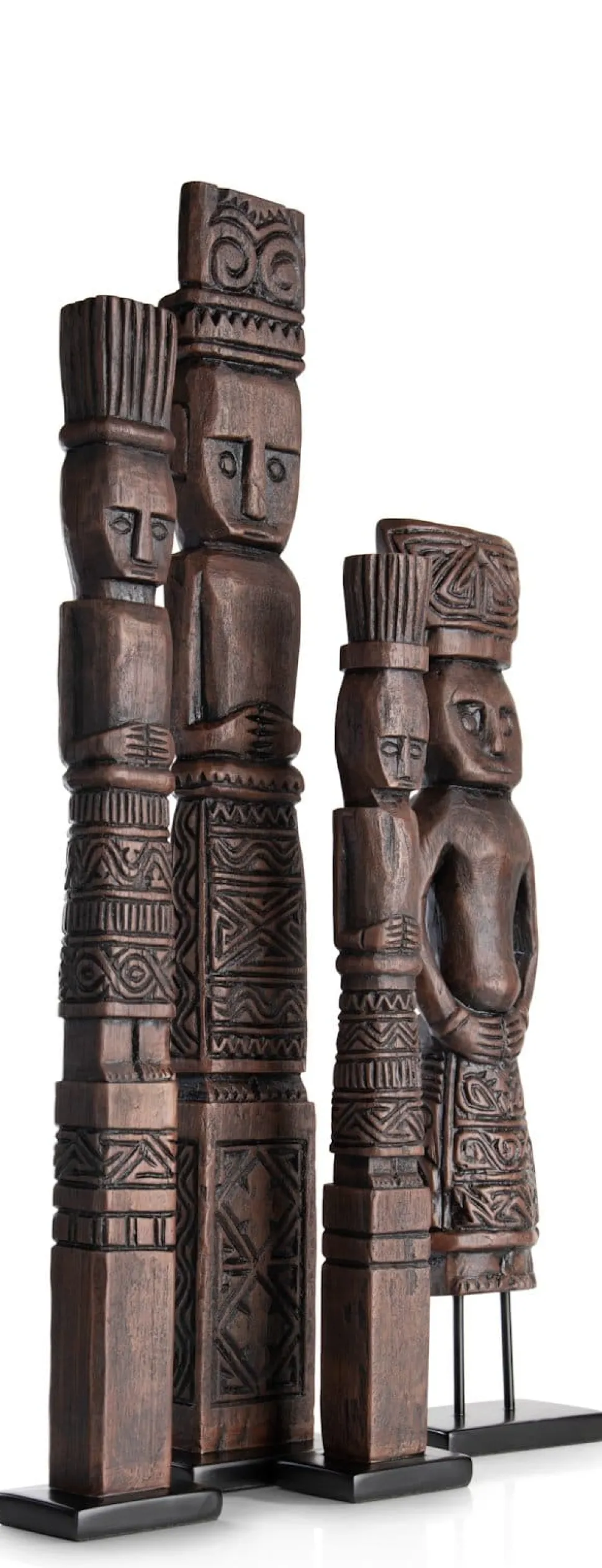 Dromen van verre oorden is altijd fijn toch? De beeldenserie MILAN van COCOmaison brengt je onmiddellijk in de sfeer van exotische plekken met witte stranden en zon in overvloed. Elk beeld is handgekerft uit lichte kunsthars en daardoor uniek. De beelden zijn donkerbruin en hebben een verweerde houtlook, waardoor je ze amper van originele houtsnijwerken kunt onderscheiden. Dit beeld is 62 cm groot, zijn ‘broertjes’ variëren in grootte van 68 tot 86 cm. Plaats er een of twee op een tafel of buffetkast en droom heerlijk verder tot je volgende vakantie!