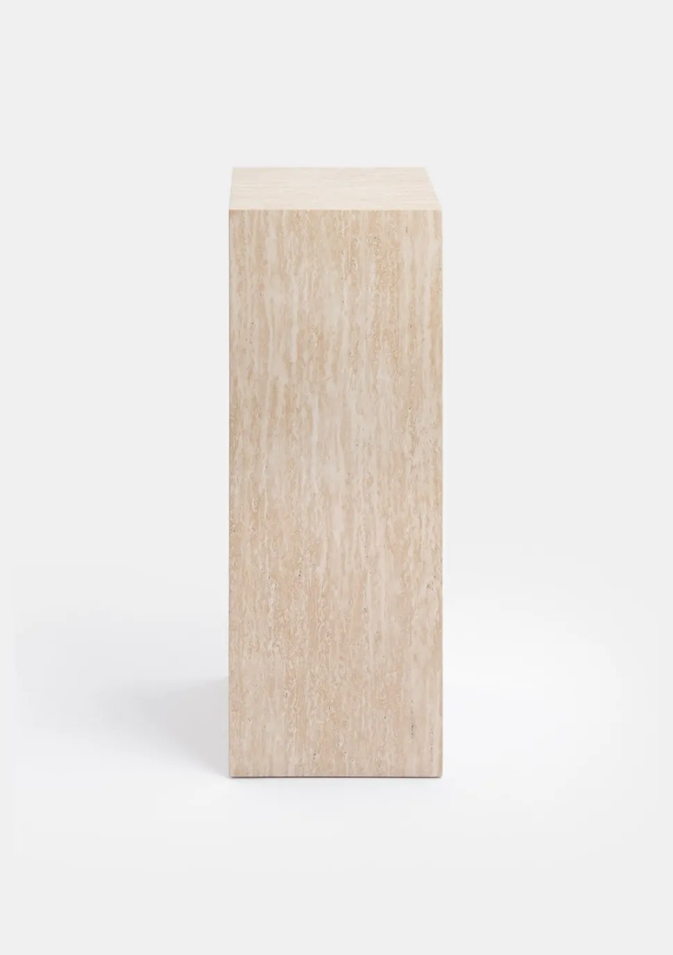 Voor elk object in huis dat the spotlights verdient is er de Nea pilaar van COCOmaison. Een plantenzuil, piëdestal, sokkel of standaard: hoe je hem ook noemt, handig is hij altijd! De Nea is gemaakt van MDF en papier en heeft een crèmekleurige travertin-look. met een gwicht van ruim 13 kg is hij tegelijk stevig en goed verplaatsbaar. De pilaar is 80cm hoog en heeft een oppervlakte van 30x30cm, zodat je er makkelijk een grote pot een vaas of een beeld op kwijt kunt. Heb je aan een pilaar niet genoeg, combineer hem dan met een tweede Nea van 100cm hoogte.