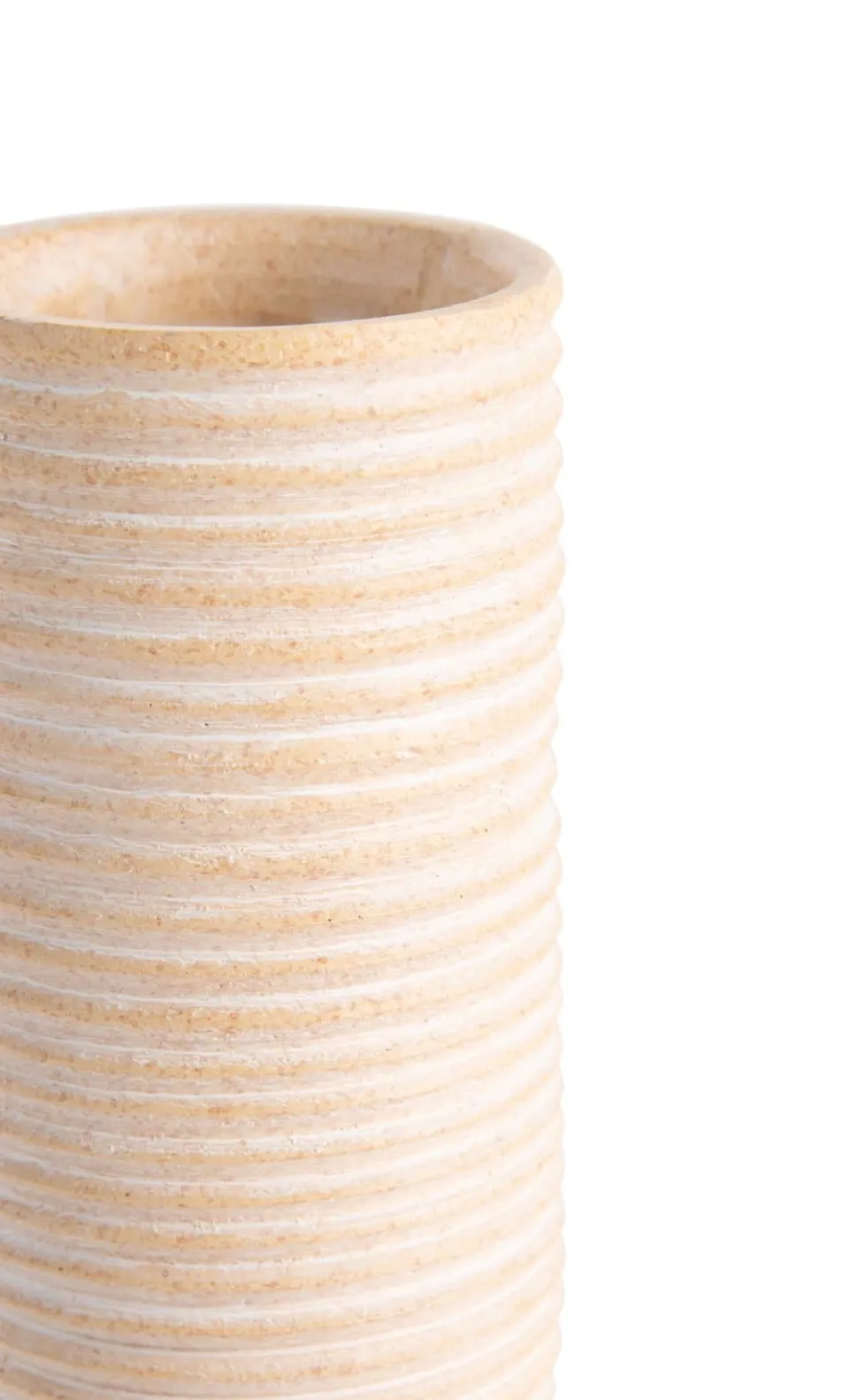 De leuke NOVA vaas van COCOmaison is 19 cm hoog. Hij is uitgevoerd in polyresin met een betonlook. De vaas heeft een egaal zachtoranje design en het bovenste deel is versierd met subtiele horizontale lijntjes. Door de eenvoud van het ontwerp komen de bloemen die je erin zet nog beter tot hun recht. Zonder bloemen is de vaas overigens ook prachtig om te zien en laat hij zich goed combineren met andere modellen in vergelijkbaar materiaal en/of vergelijkbare kleuren. Bijvoorbeeld met zijn grote broer, 31 cm groot en geheel wit.