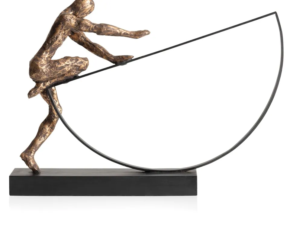 Met dit abstracte beeld Pushing van COCOmaison maak je je styling helemaal compleet. Het met de hand geboetseerde beeld laat een man zien die ene halve cirkel vooruitduwt. Het heeft een zwarte kleur met een mooie vintage gouden finish en is de ideale toevoeging voor bijvoorbeeld je vensterbank of voor een open vak in een kast. Het beeld is gemaakt van een combinatie van metaal en polyresin, is 40 cm breed en 33 cm hoog. Combineer beeld Pushing met het bijpassende beeld Climbing.