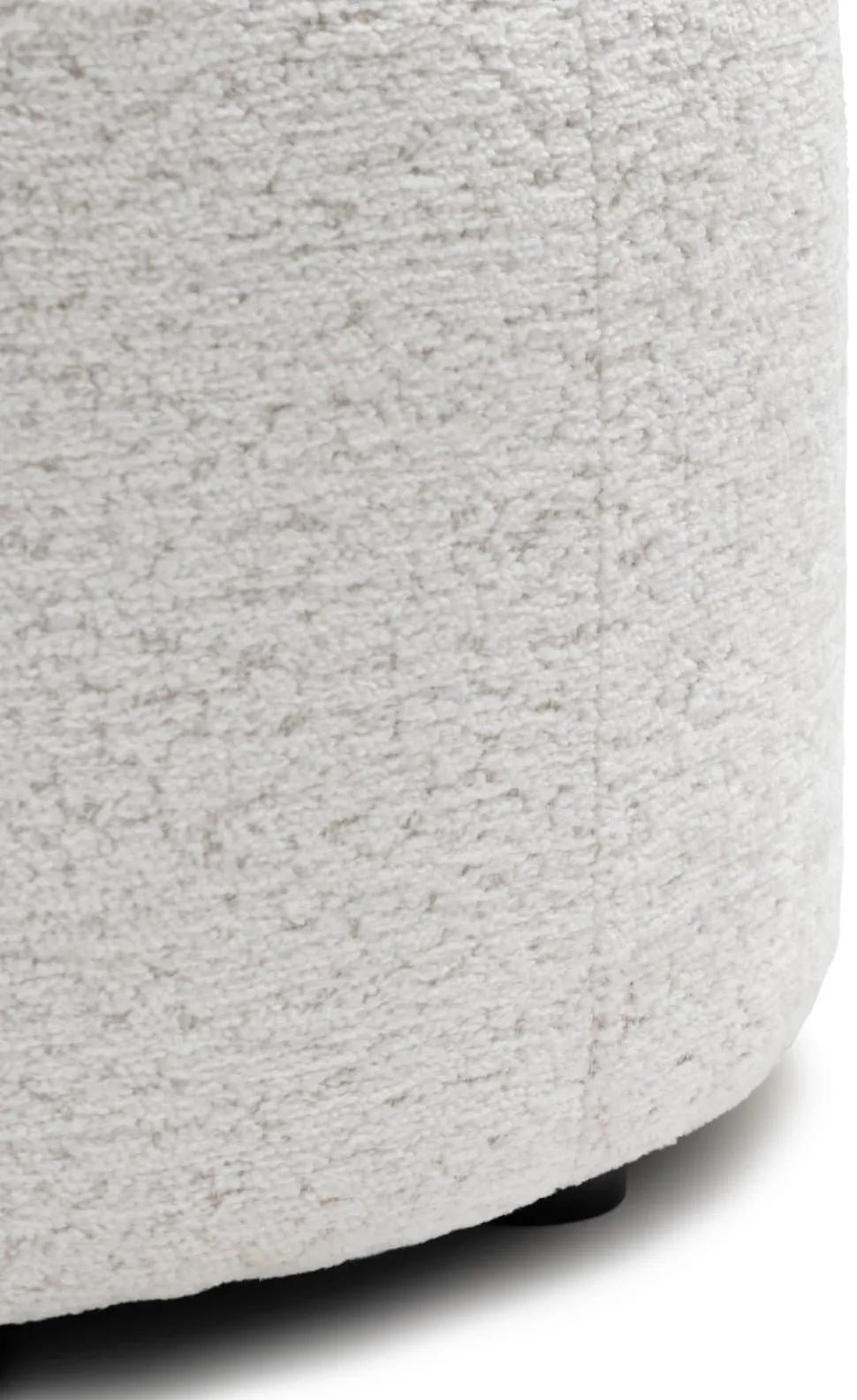 Met het zitsysteem Roan van COCOmaison kun je zelf een zithoekje samenstellen door verschillende elementen te combineren. De poefs, de bank en de fauteuil passen door hun vorm namelijk perfect samen. Alle items zijn bekleed met een trendy stof en zijn verkrijgbaar in twee kleuren. Dit is de ronde poef in kleur crème. Deze is gemaakt van 40% multiplex, 30% schuim en 30% stof. De poef is 44 cm hoog en heeft een diameter van 74 cm. Een handig detail: er worden twee sets poten meegeleverd, waardoor je de fauteuil op een standaard zithoogte kunt plaatsen, maar ook op een hoogte die geschikt is voor gebruik aan een eettafel.