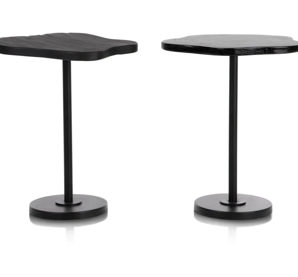 Laat je interieur stralen met de unieke Tina bijzettafel van COCOmaison! Dit tafeltje heeft een blad in een organische vorm, een diameter van 40 cm en een hoogte van 50 cm. Het metalen frame met zwarte finish geeft een eigentijdse touch, terwijl het houtnerf-blad in het zwart een natuurlijk element toevoegt. Tina is niet alleen functioneel, maar ook een speelse aanvulling die perfect te combineren is met andere bijzettafels.