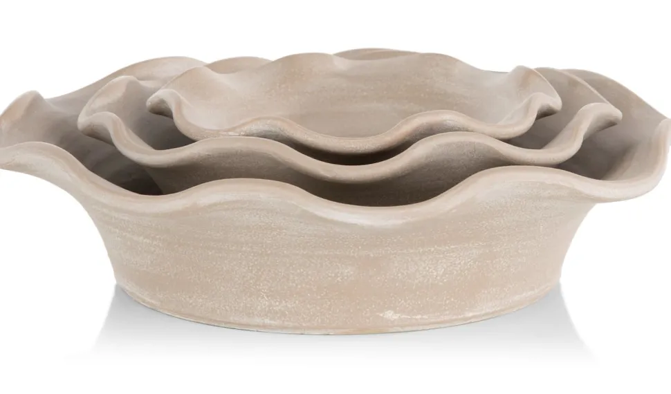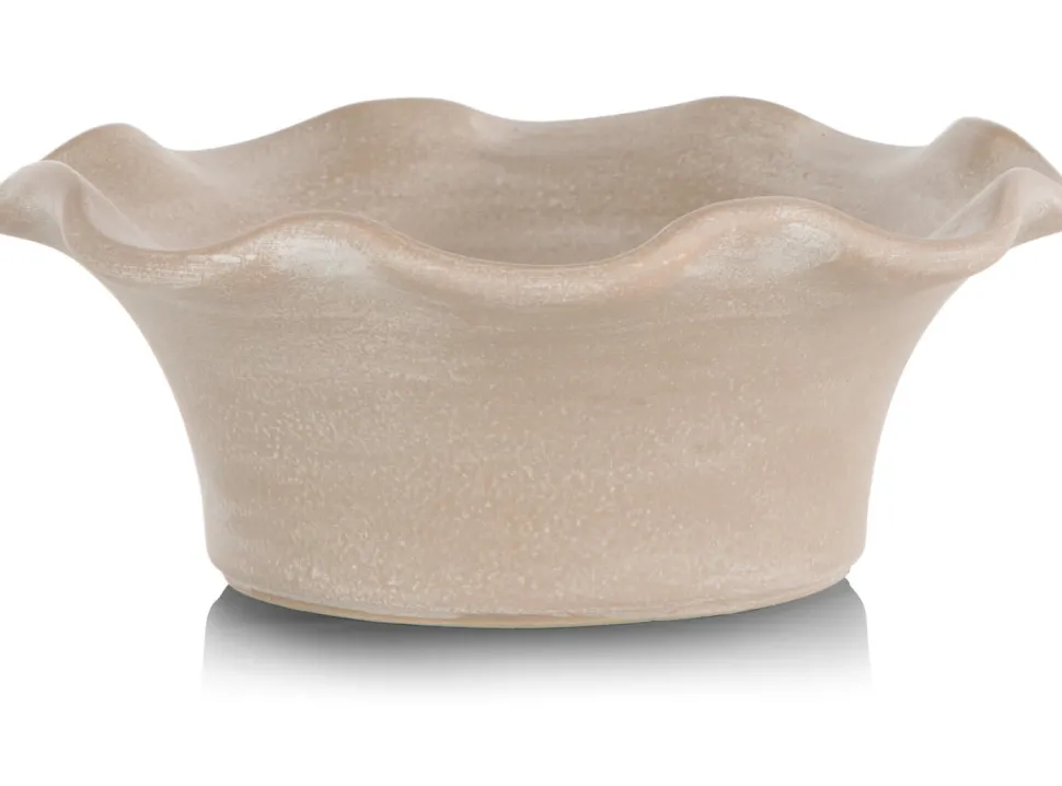 De oorsprong van de naam WAVE laat zich makkelijk raden: deze stijlvolle reeks potten en schalen kenmerkt zich door een verfijnde golfende rand. WAVE van COCOmaison wordt geproduceerd in Portugal, van 100% aardewerk. Elk object uit deze serie is met de hand gemaakt en er zijn dus geen twee stuks hetzelfde! De kleur is beige, maar ook in de kleurnuance is iedere pot uniek. De schaal is verkrijgbaar in drie maten, waarvan dit de kleinste is. Deze schaal heeft een doorsnede van 25cm bij een hoogte van 11cm.